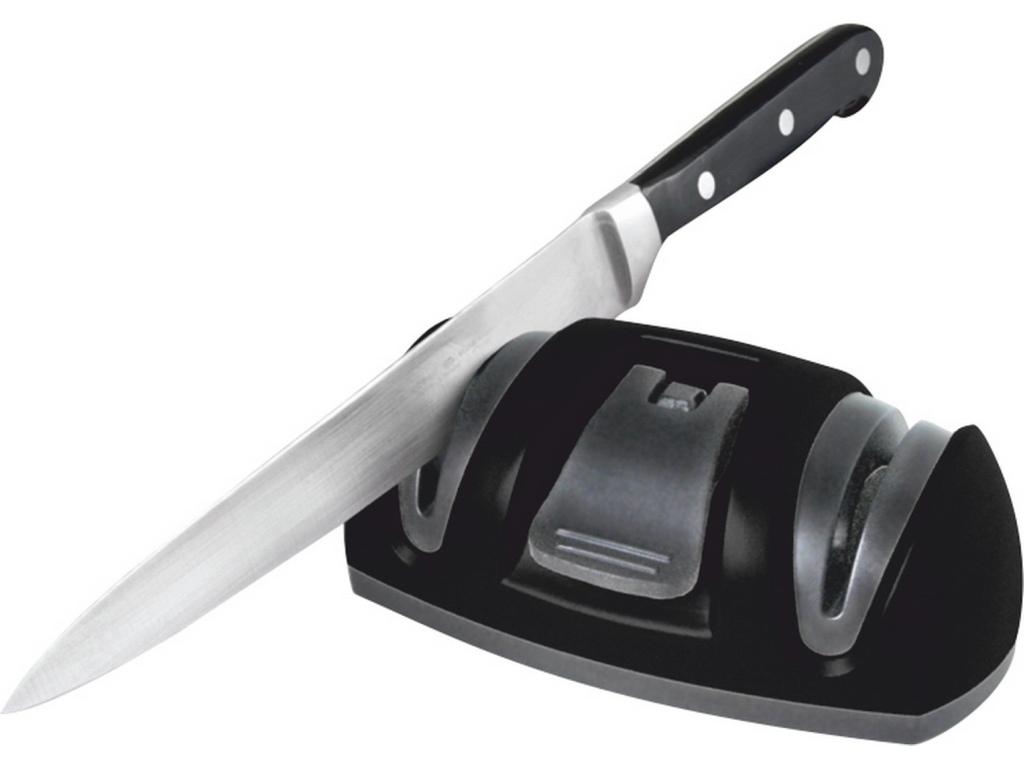 Универсальная ножеточка, 2 слота для заточки: с алмазным покрытием (грубая заточка), с керамическим покрытием (полировка, шлифовка), Прикрепление к рабочей поверхности с помощью присоски.