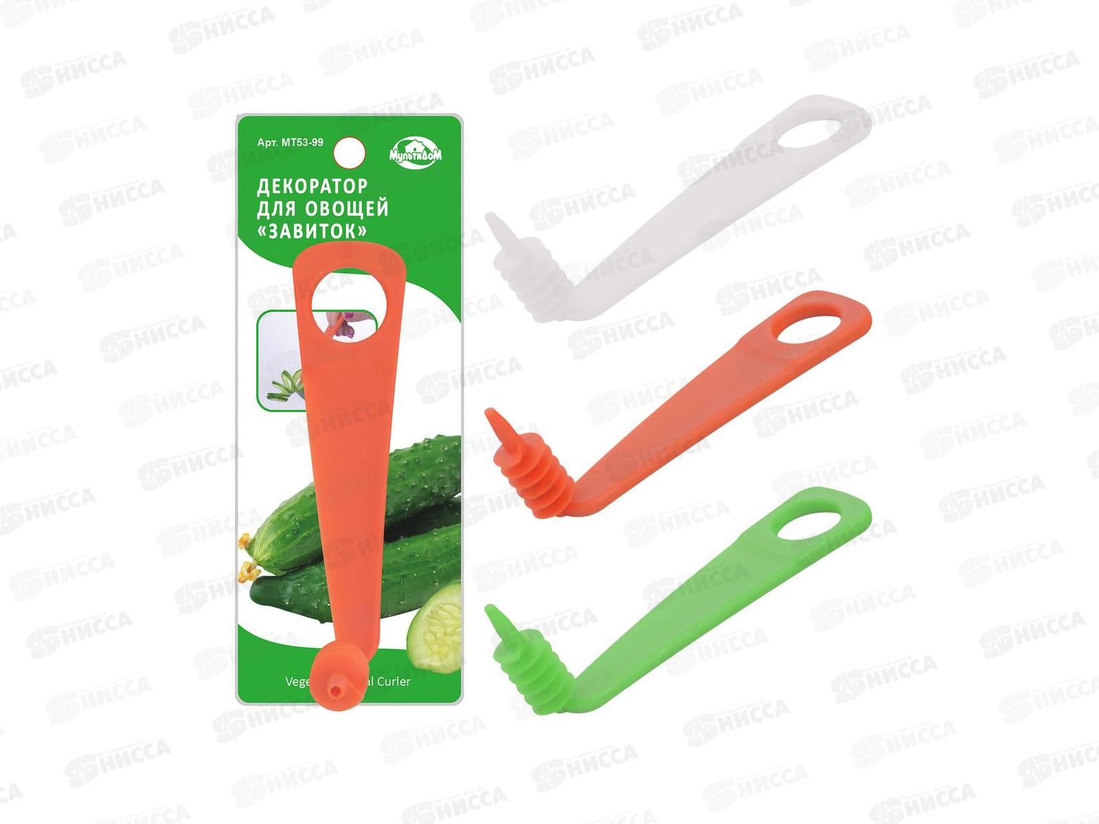 С декоратором «Завиток» так просто создавать креативные украшения для ваших блюд. Украшайте блюда овощными завитками-спиральками. Инструмент подходит для продолговатых овощей: огурцов, цуккини, моркови, картофеля. Вкрутите спиральный нож в центр овоща, поместите палец в отверстие и вращайте ручку. Надавливайте в сторону режущей части, чтобы ваши спиральки получались ровными. Использование декоратора не требует специальных навыков, вы быстро освоите инструмент на практике. Ваши блюда будут восхищать не только вкусом, но и подачей. Изготовлено из пластмассы (полипропилен).