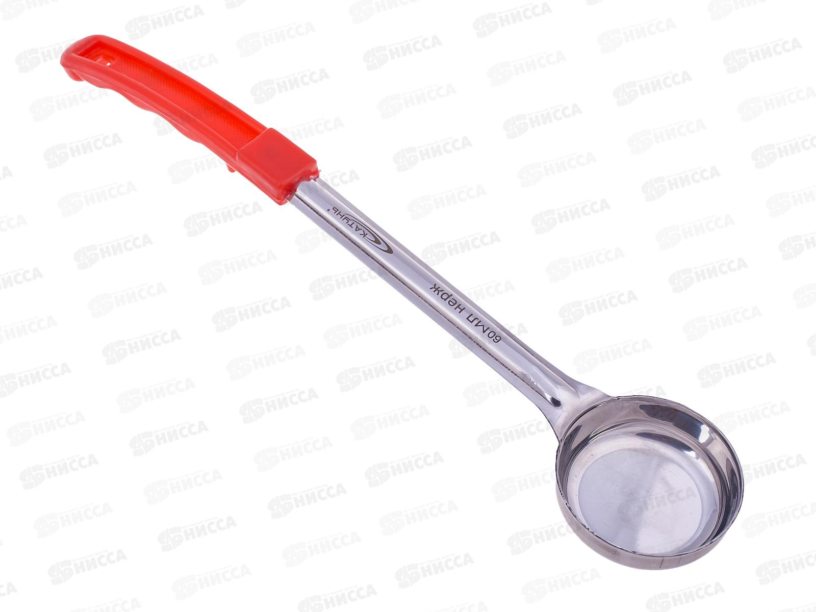 Половник сталь 60мл с плоским дном красная ручка 0198