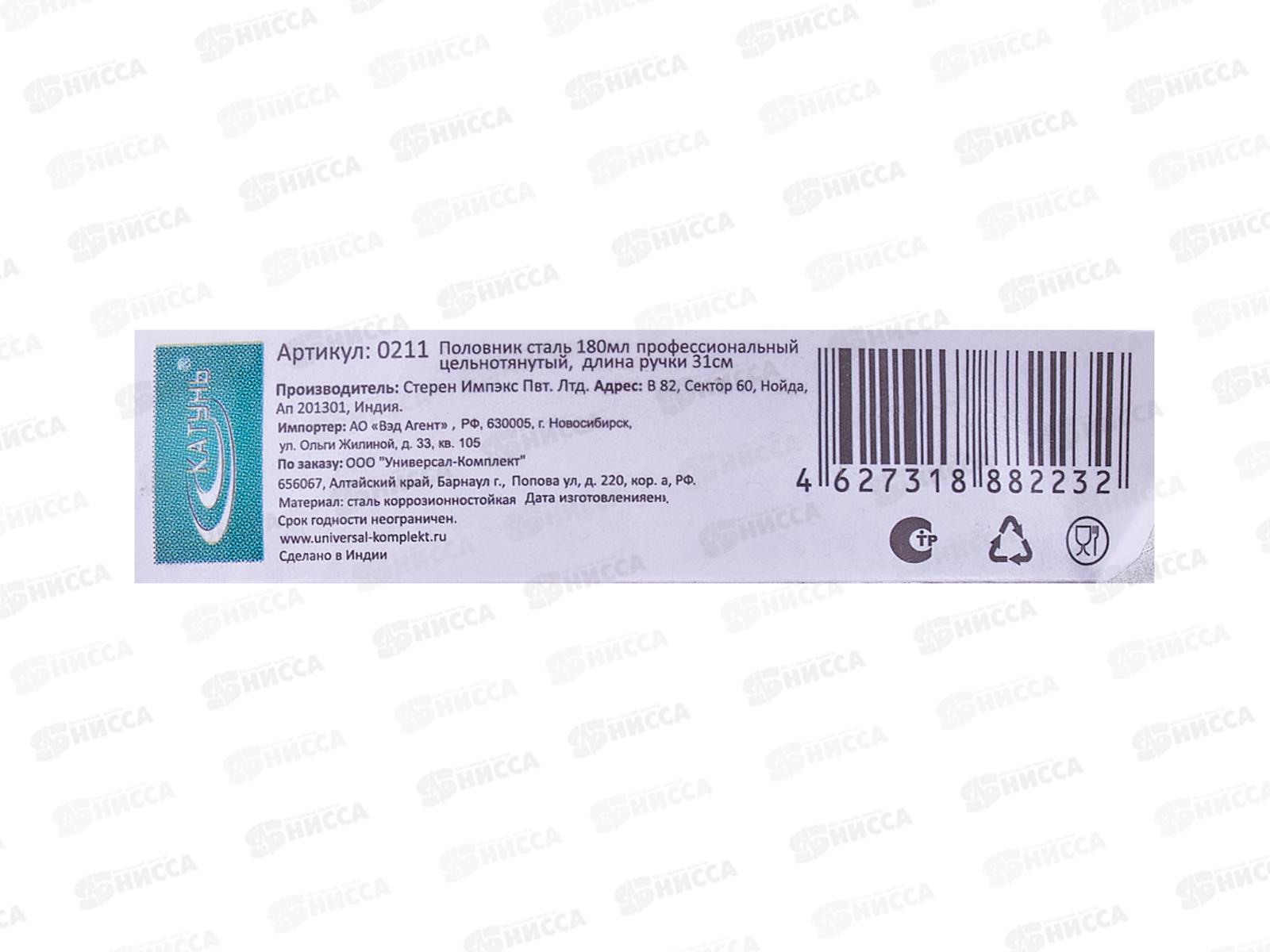 Половник сталь 180мл профессиональный цельнотянутый ручка 31см 0211