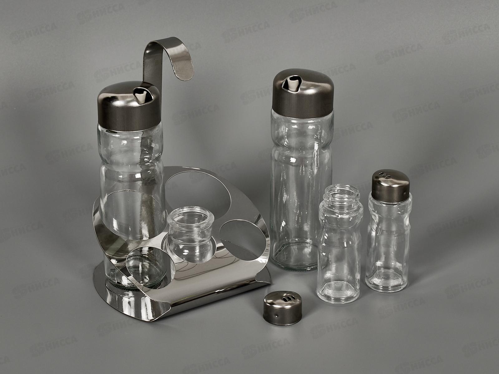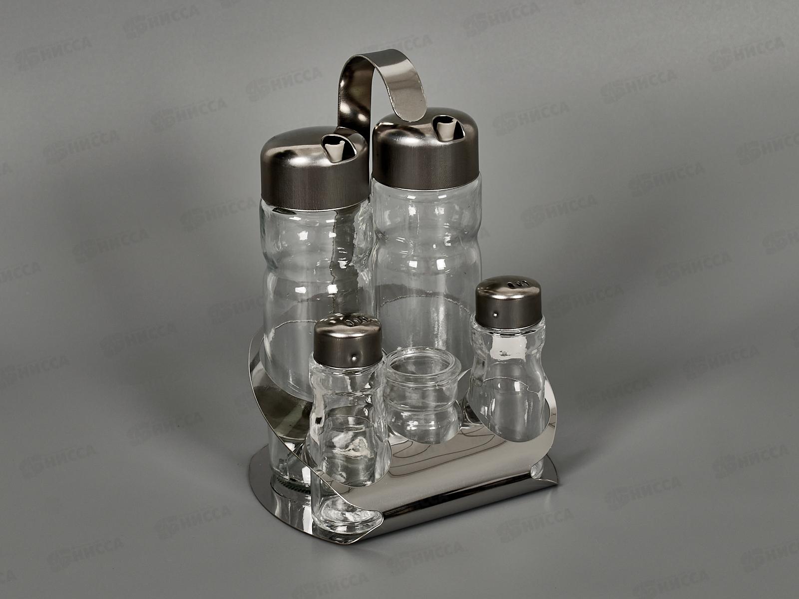Состав набора: солонка, перечница, емкость для соуса (масла) - 2 шт, емкость для зубочисток
