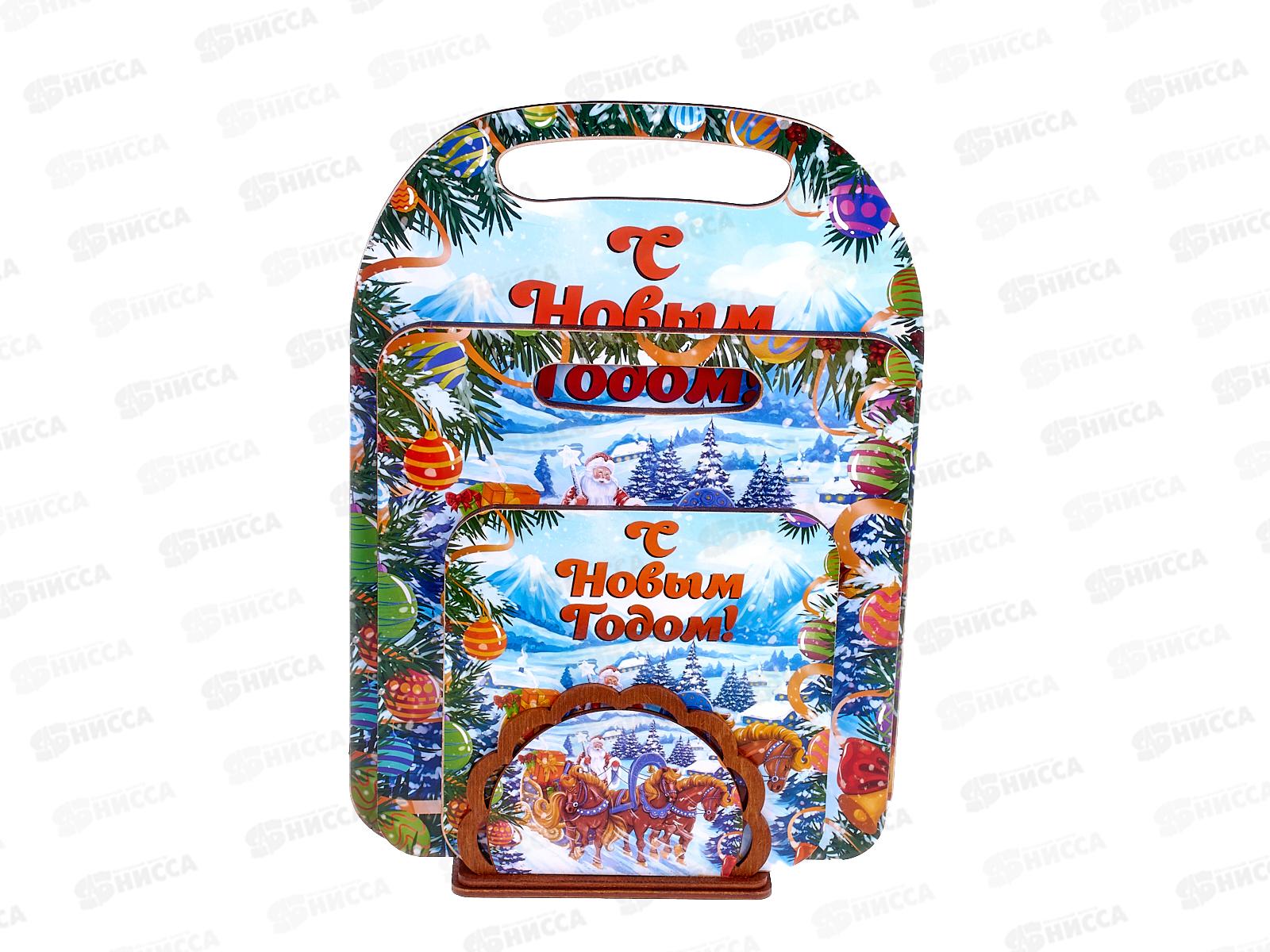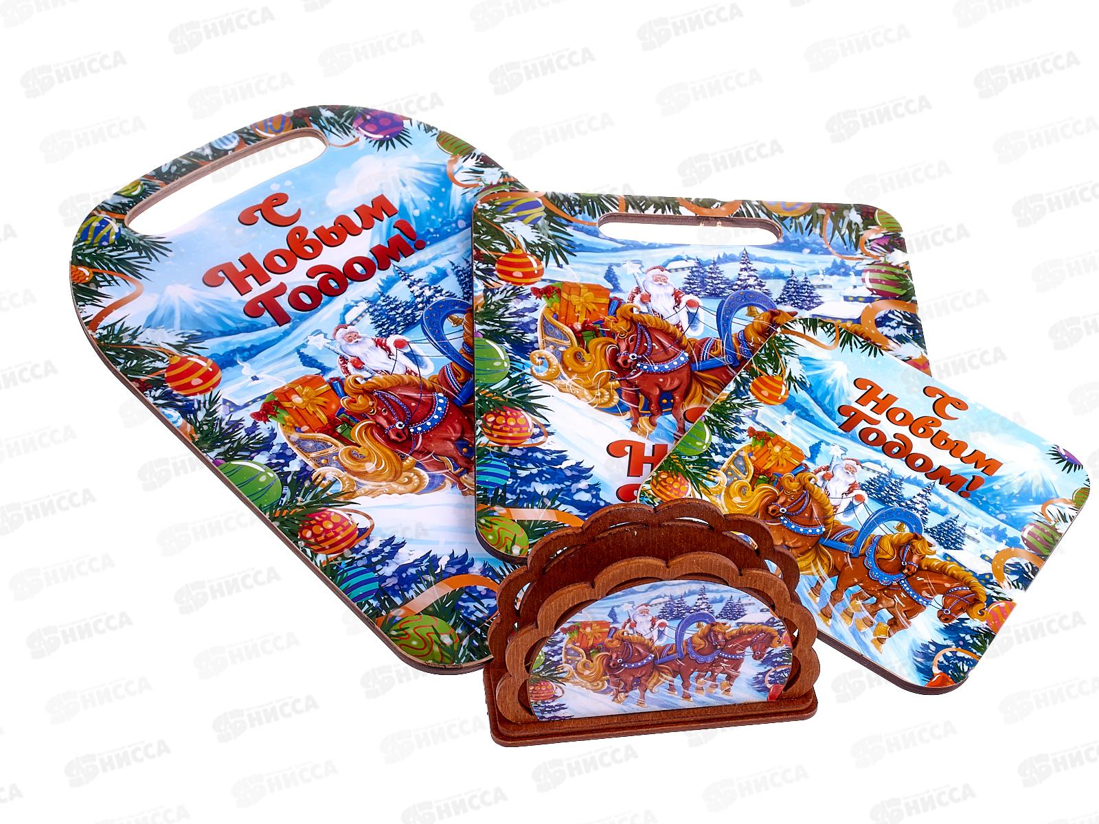 Комплект досок разделочных КМ-16 "Дед Мороз с конями" (2доски,подставка,салфетница)
