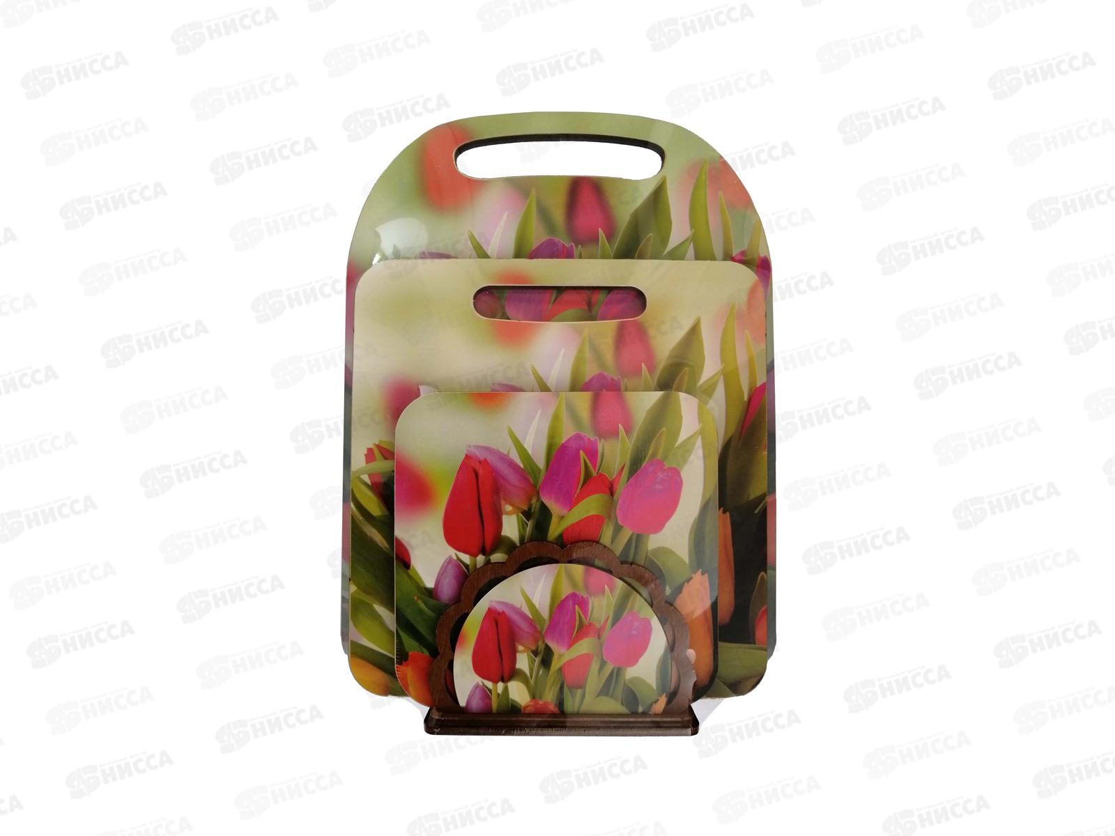 Комплект досок разделочных КМ-6 "Тюльпаны" (2доски,подставка,салфетница)