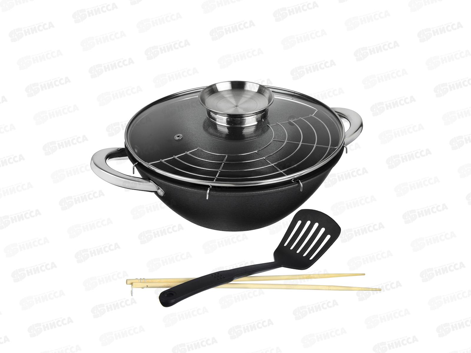 Комплектация: казан, стеклянная крышка, решетка, нейлоновая лопатка, бамбуковые палочки