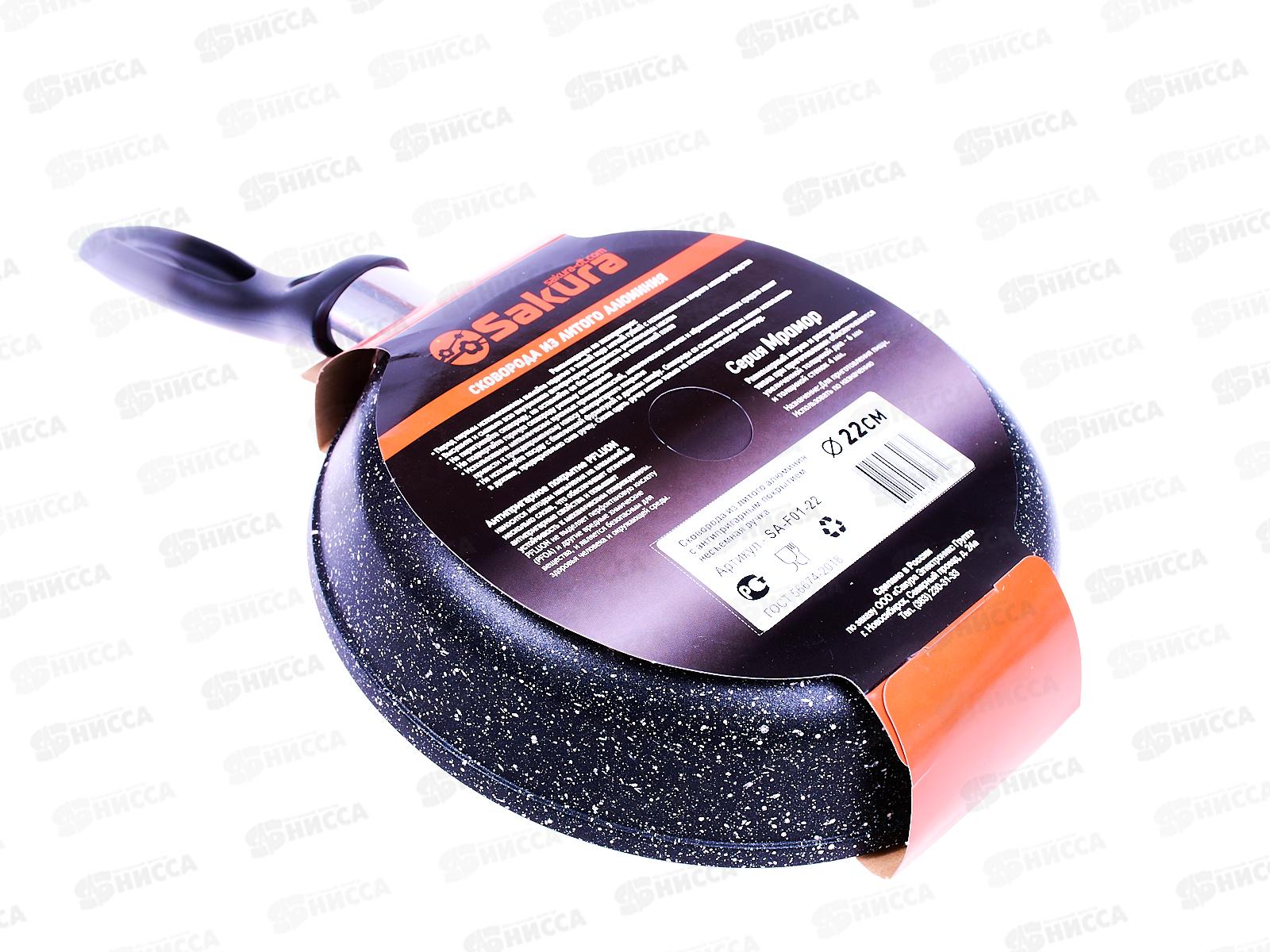 Сковорода SA-F-01-22 Мрамор 22см литая черная