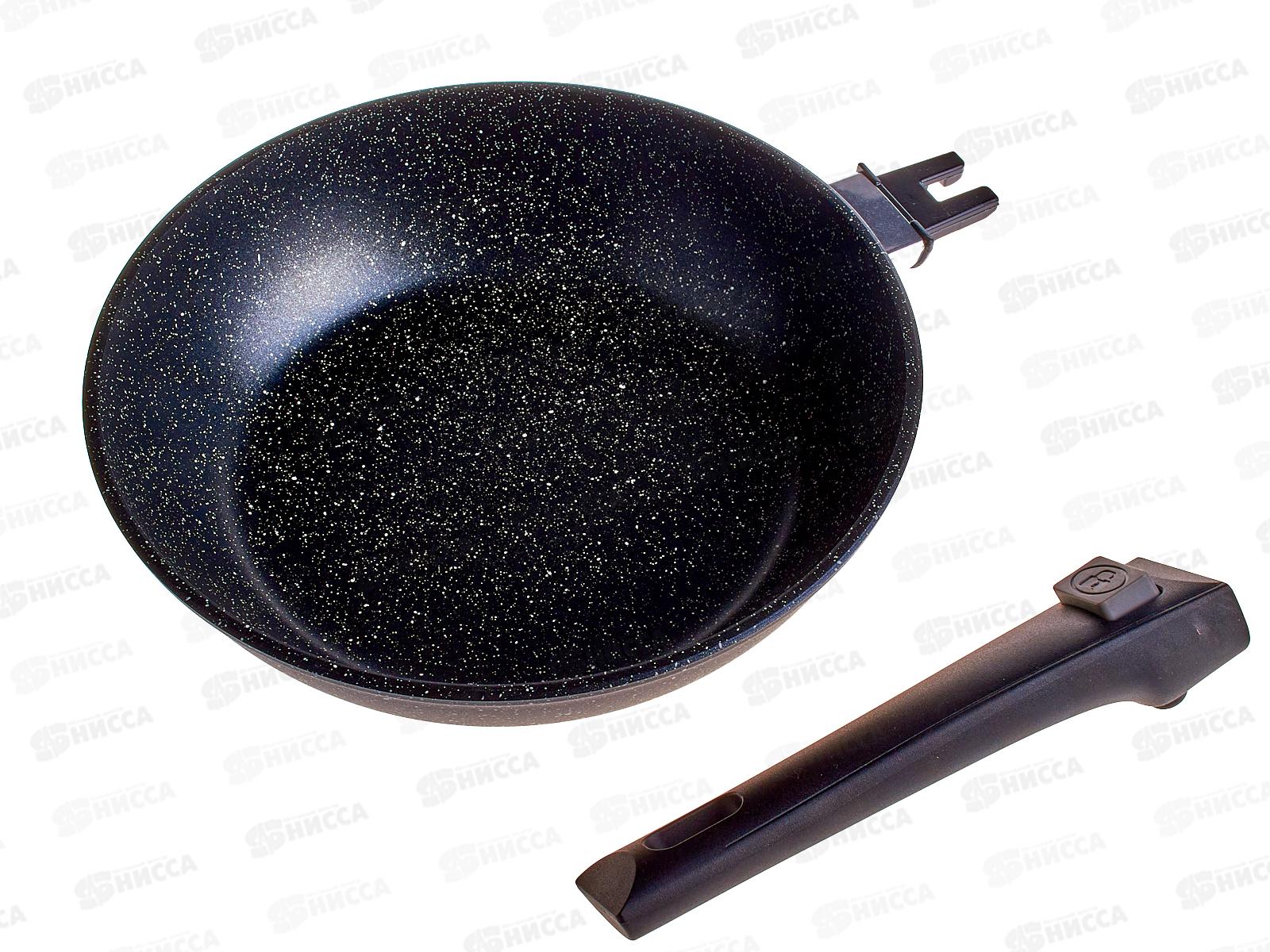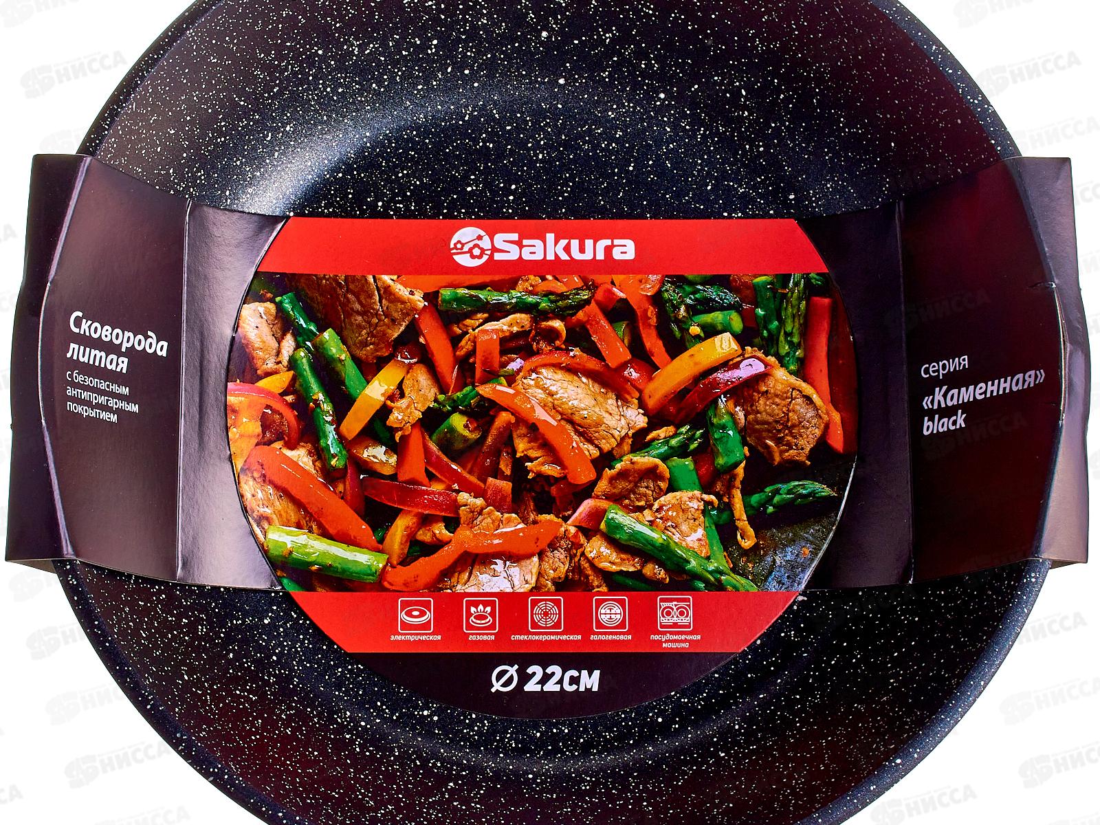 Сковорода SA-F-04-22 Каменная Black 22см литая съемная ручка черная