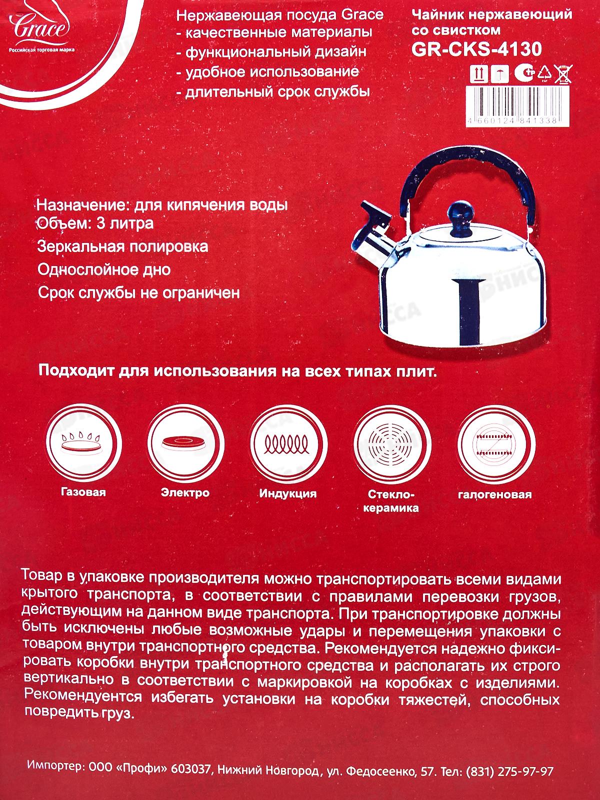 Чайник Grace 3л металл нерж сталь GR-CKS-4130 115874