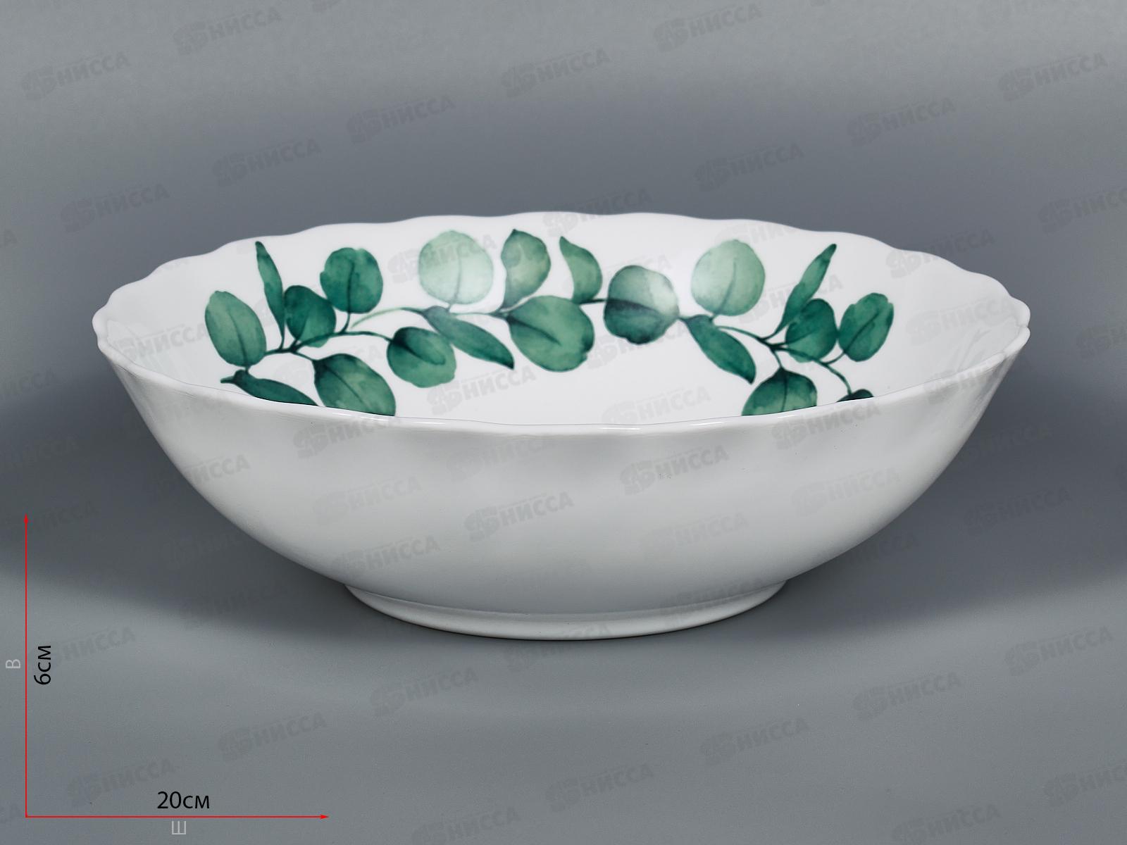 Салатник волнистый край 20см 950мл Ветка эвкалипта 1039069