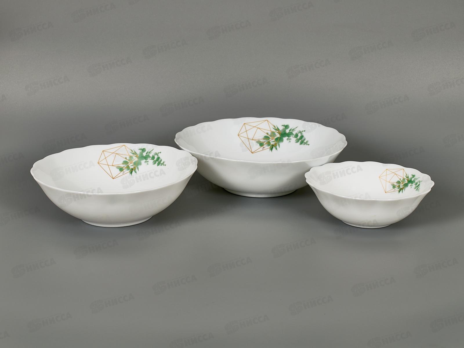 Состав набора: тарелка плоская круглая d 17,5 см - 6 шт, Салатник круглый d 12,5 см, 220 мл - 6 шт, салатник круглый d 17,5 см, 600 мл - 6 шт, салатник круглый d 20 см, 900 мл - 1 шт.