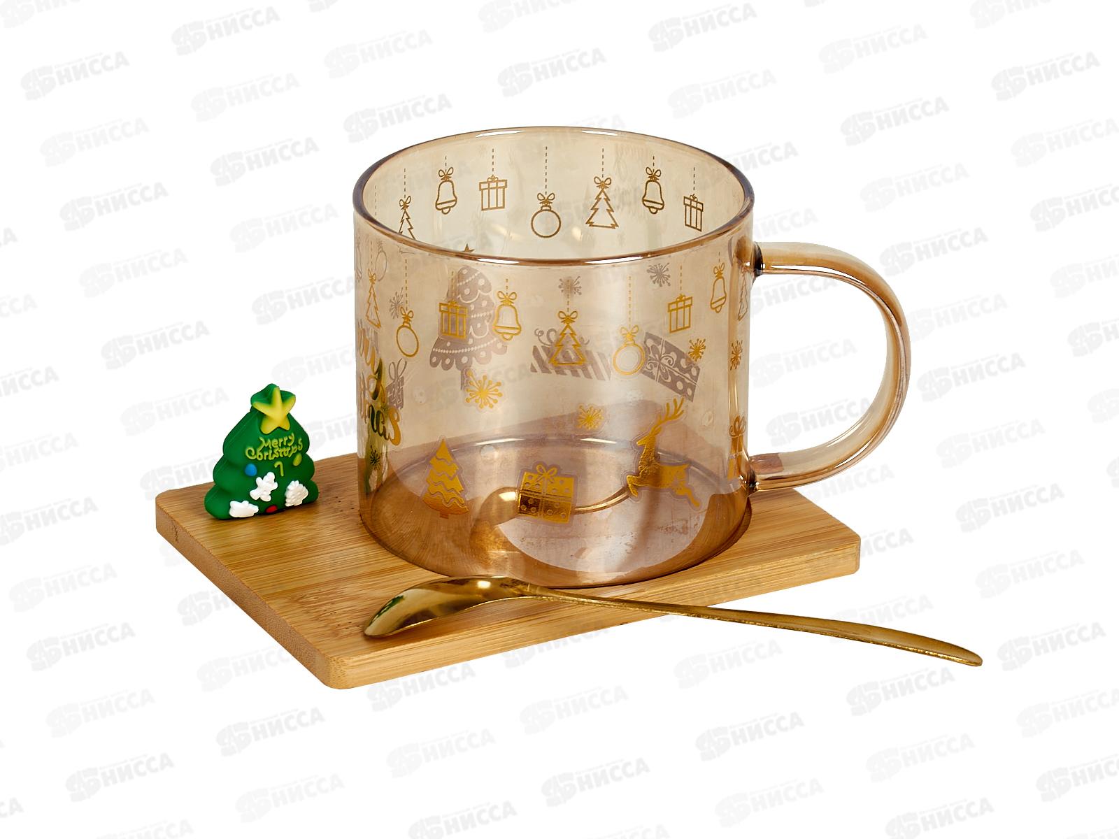 Кружка 250мл "Зимняя сказка" бамбук подст с ложкой 891-0628