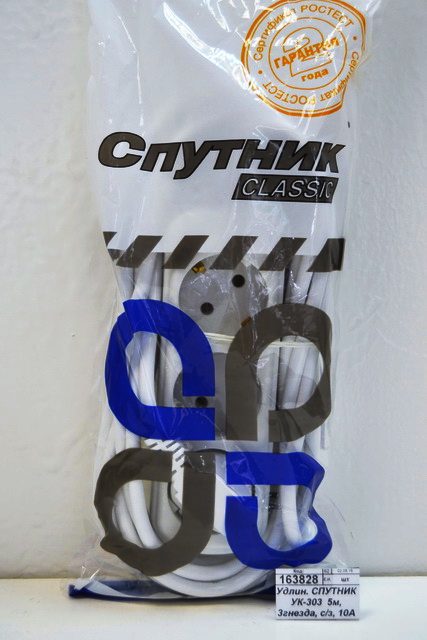Удлинитель СПУТНИК УК-303 5м, 3гнезда, с заземлением, 10А *20