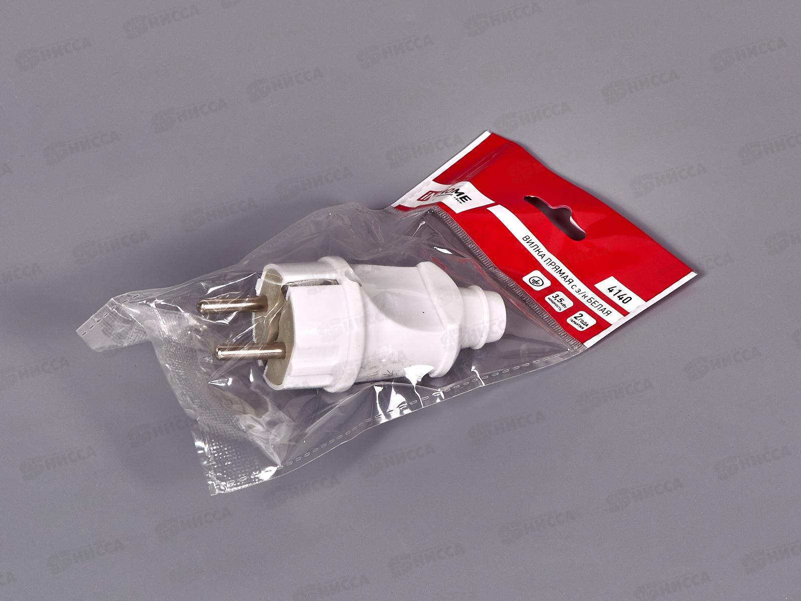 Вилка прямая с заземляющим контактом белая 16А, 4140 *30/300