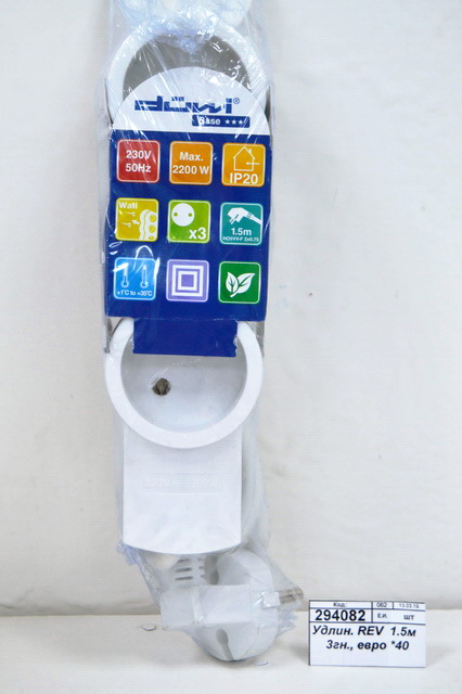 Удлинитель бытовой REV 1.5м 3 гнезда, розетки евростандарт без заземления, 2200Вт, 32001 *40