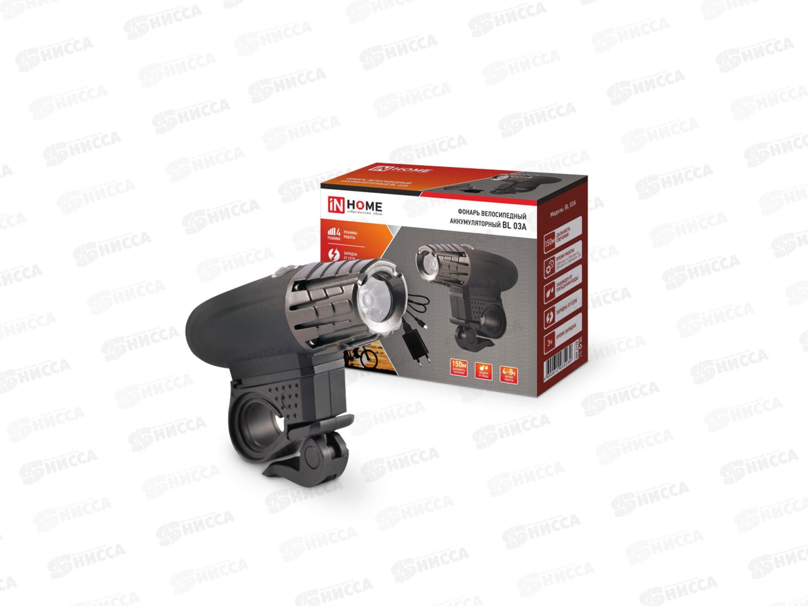 Фонарь IN HOME велосипедный BL 03А 3W аккумуляторный с зарядным устройством 220В 300Lm xthysq