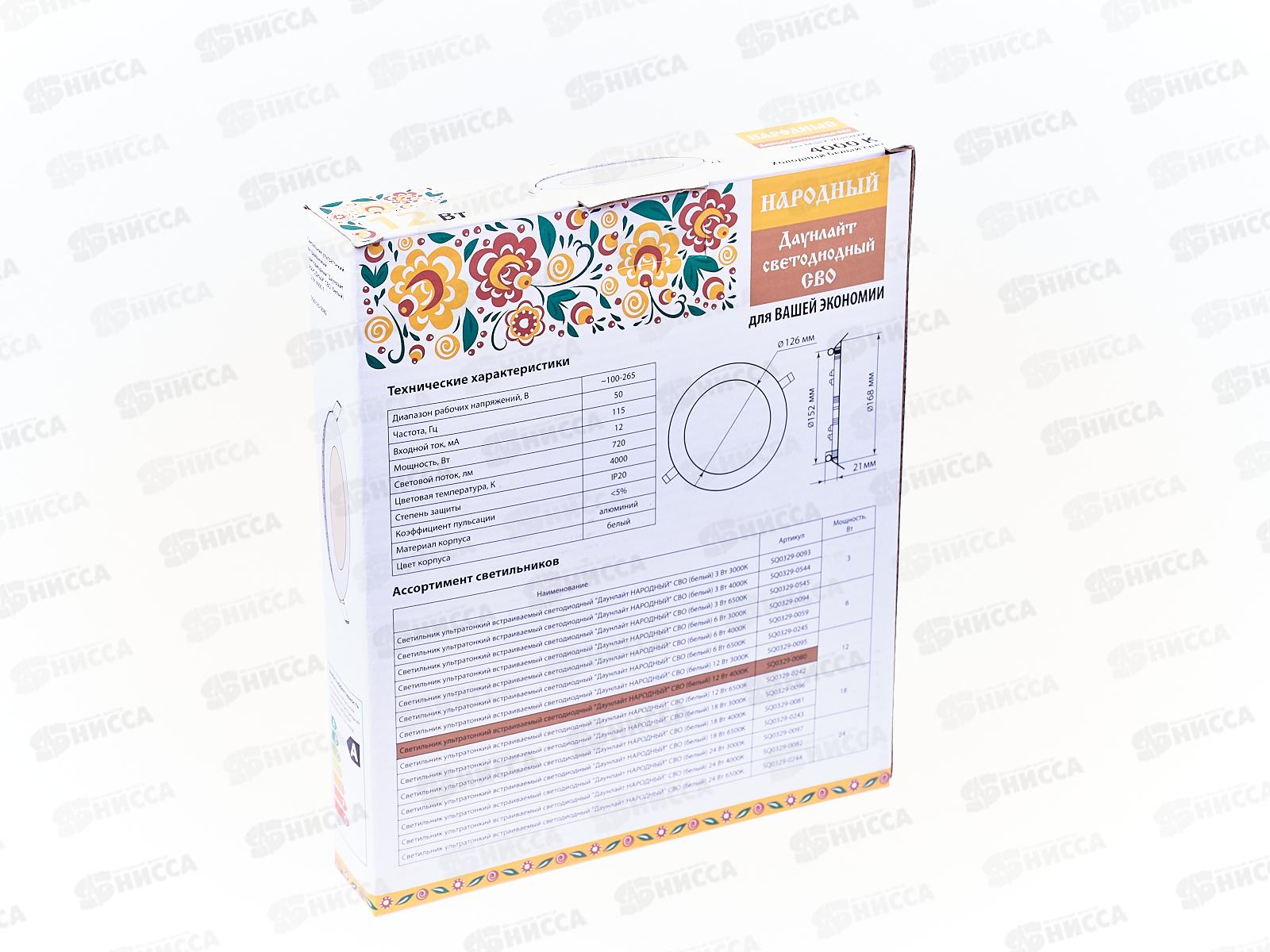 Светильник светодиодный СВО 12Вт 4000К белый "Даунлайт", 0080
