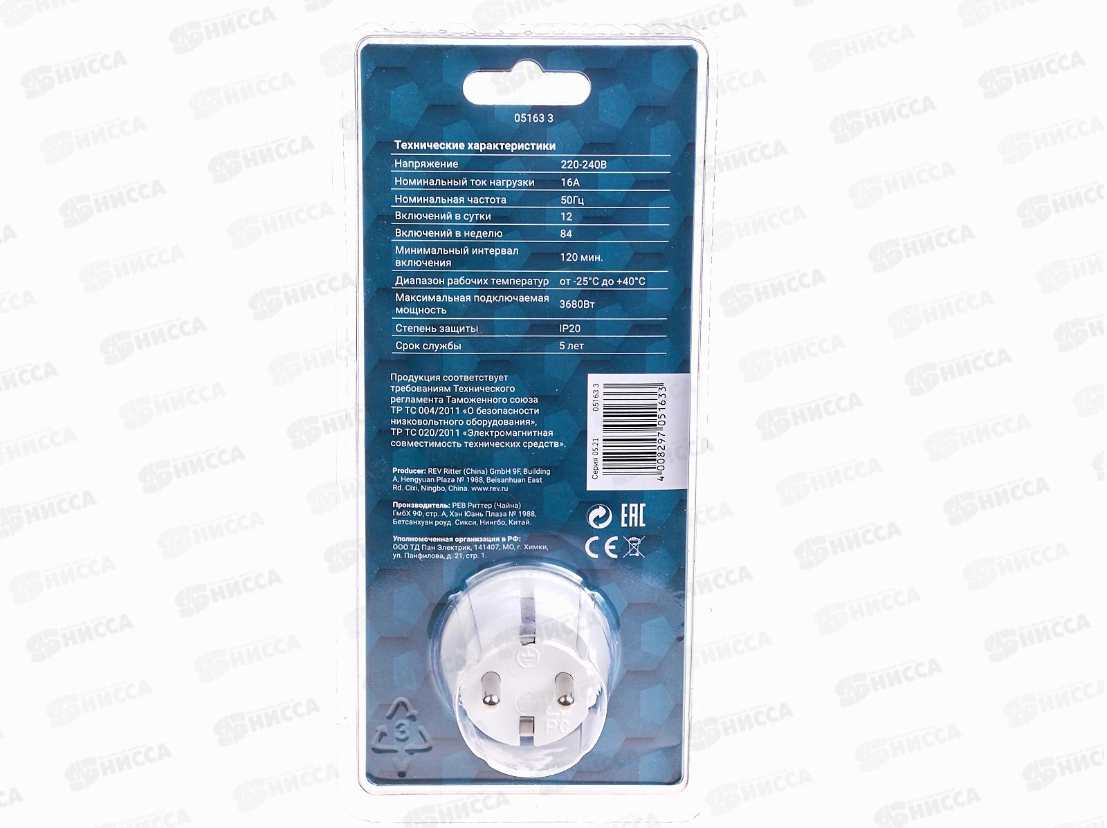 Механический таймер REV недельный, 120мин, 12 вкл/сутки, белый 05163 3 представляет собой простой и надежный в эксплуатации электротехнический прибор с одной розеткой и 84 переключателями-лепестками, каждый из которых отвечает за свой двухчасовой отрезок на семидневной шкале. В установленные 2 часа, когда соответствующий "лепесток" включен, таймер будет работать. Таким образом, можно настроить до 84 включений устройства в неделю.