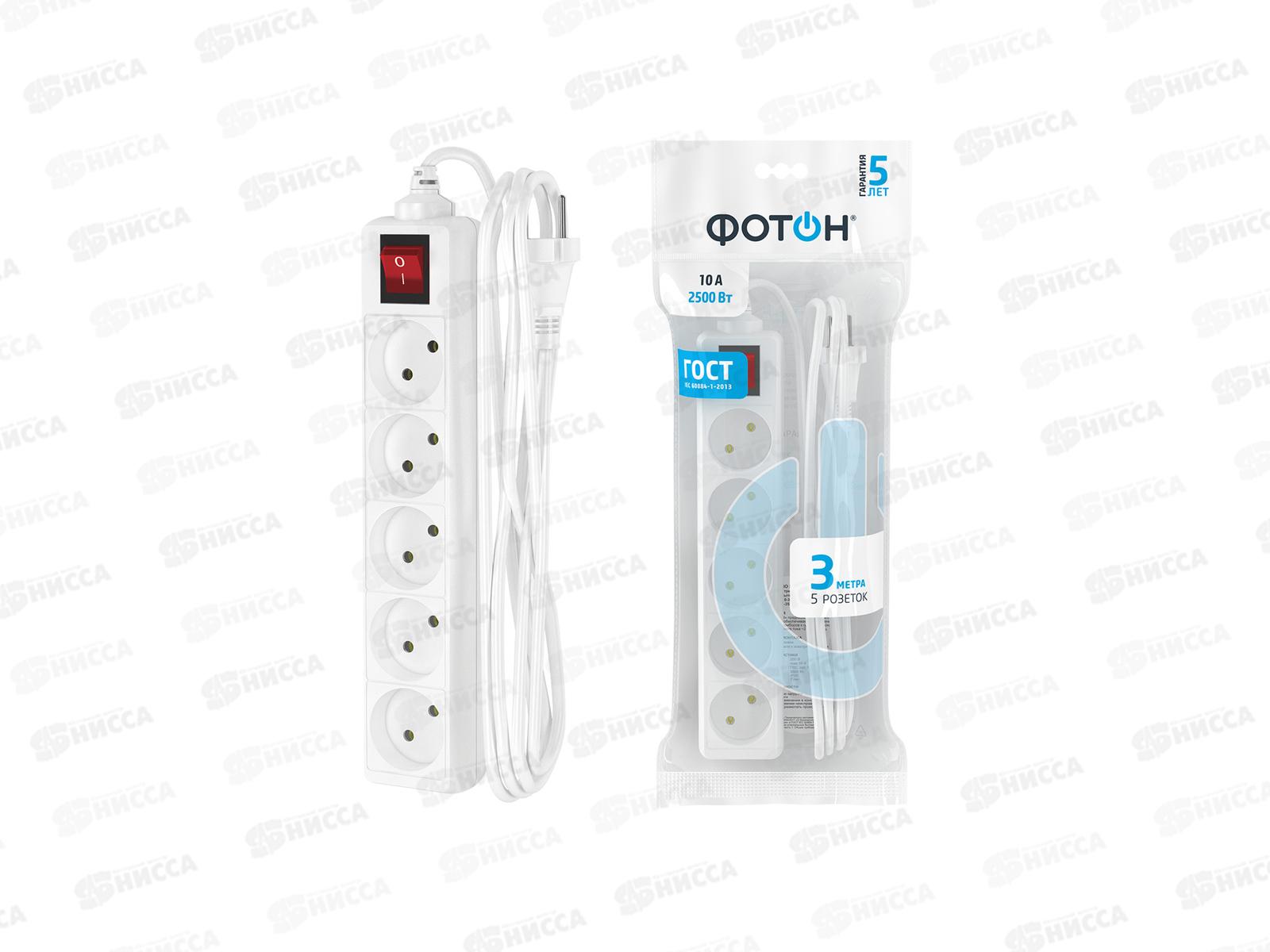 Удлинитель ФОТОН 10-35S (1*5) 3м 10А с выключателем, белый *5/20