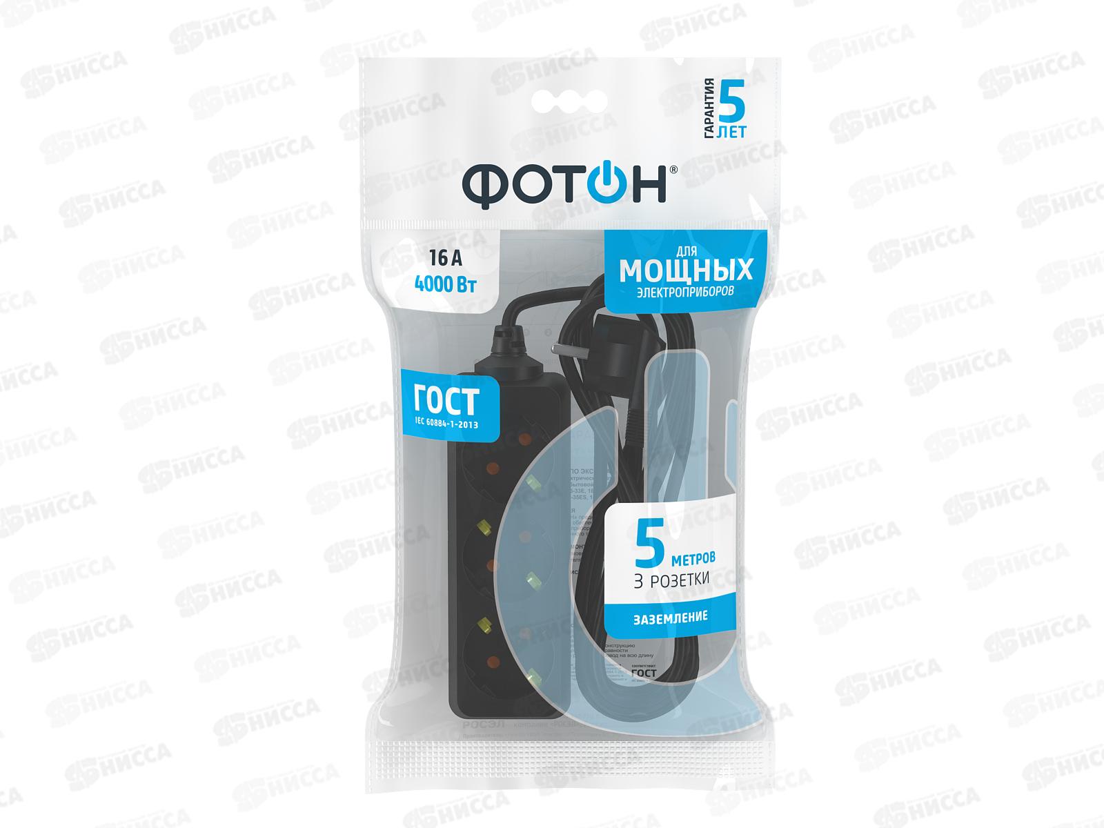 Удлинитель сетевой ФОТОН 16-53Е, 5м, 3 розетки, 16А, с заземл.,Черный *20