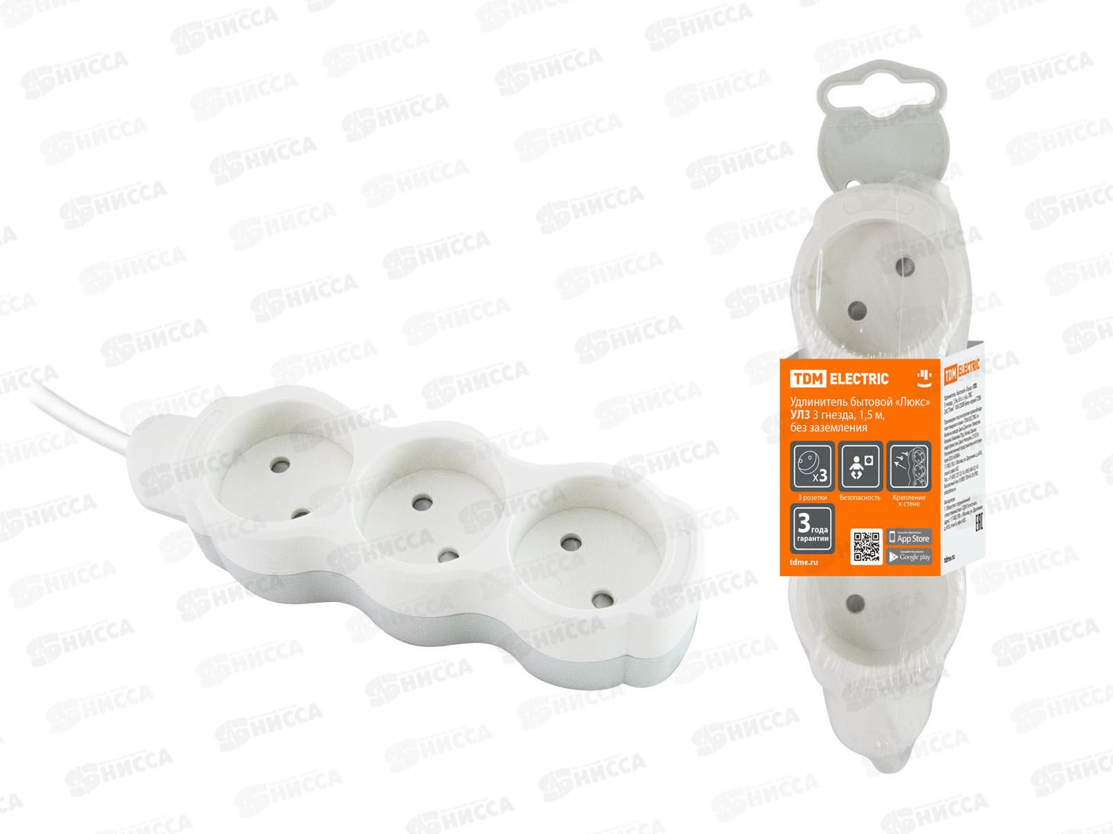 • Удлинитель бытовой  "Люкс" УЛ3 3 гнезда, 1,5м, без заземления, с защитной шторкой, ПВС 2х0,75, 10А, 0223 *20