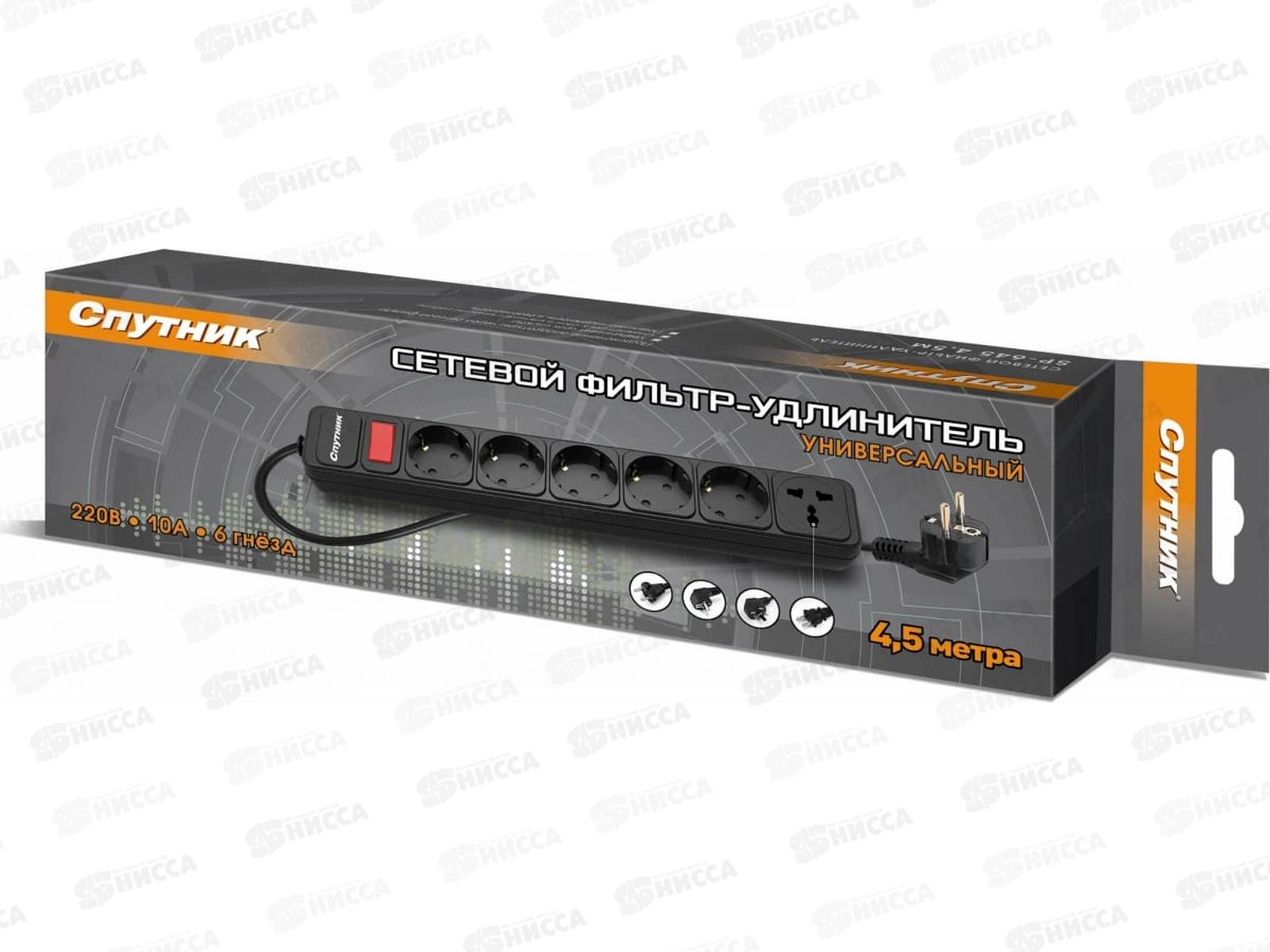 Сетевой фильтр СПУТНИК 4.5м 5гн. черный, п/у *40