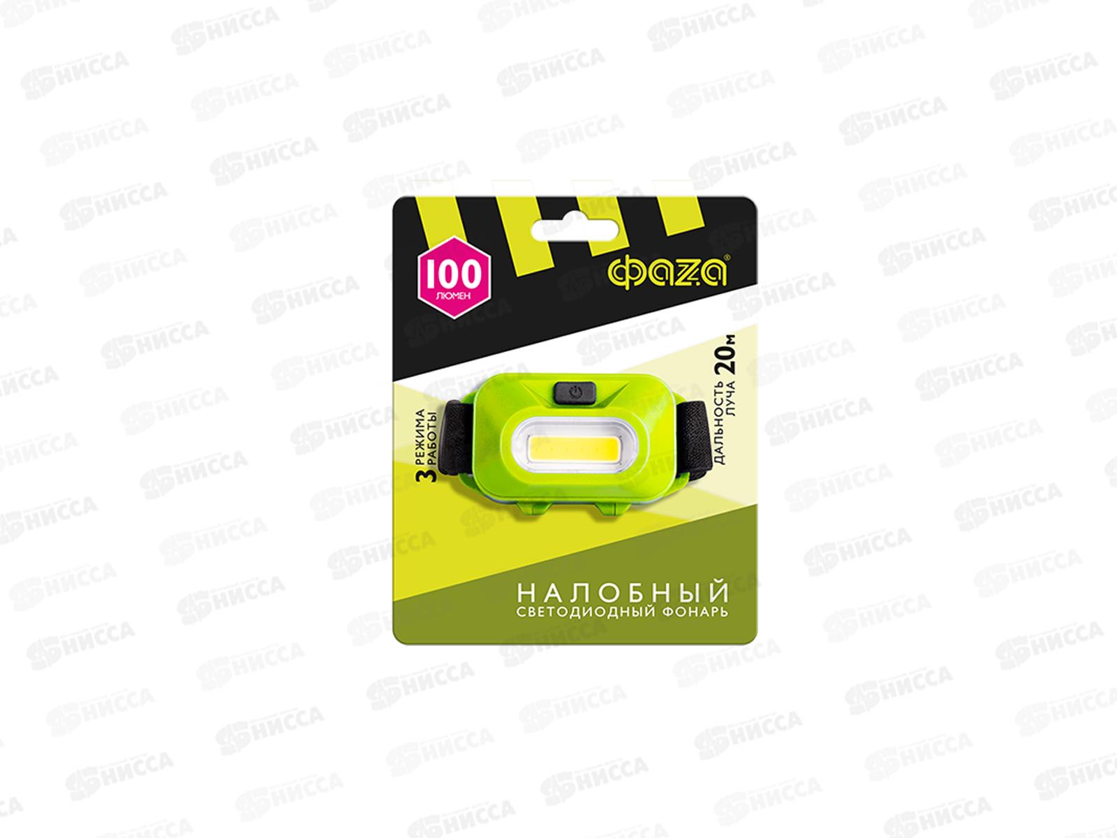 Фонарь ФАZA налобный, светодиодный, зеленый, H9-L1W-gn *12/48
