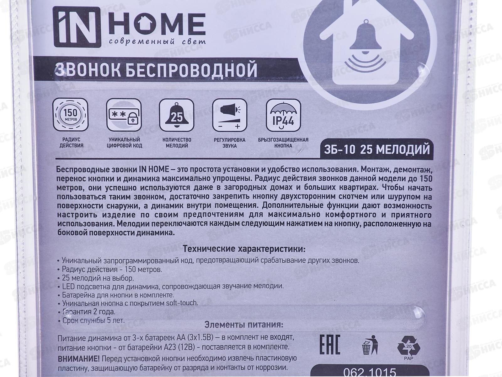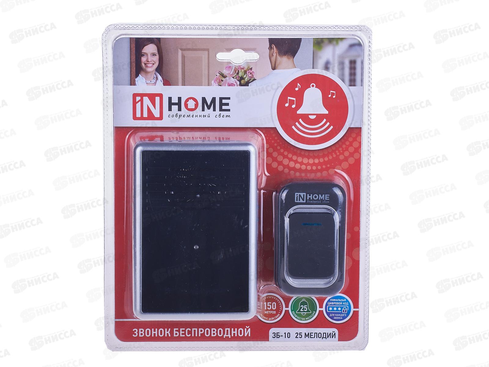 Звонок беспроводной IN HOME 3Б-10 38мел. 150м с кнопкой подсветкой серебряно-черный