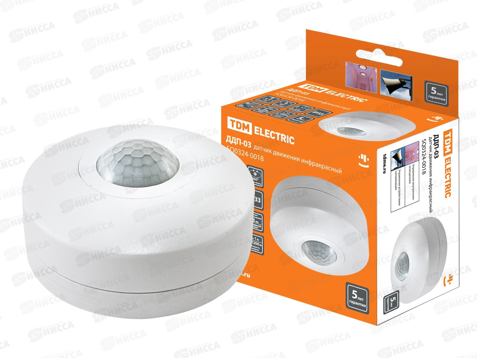 Датчик движения потолочный ДДП-03 1200Вт, 10-900с, 6м, 120 (сбоку)+360 (сверху) IP33, 0018 TDM