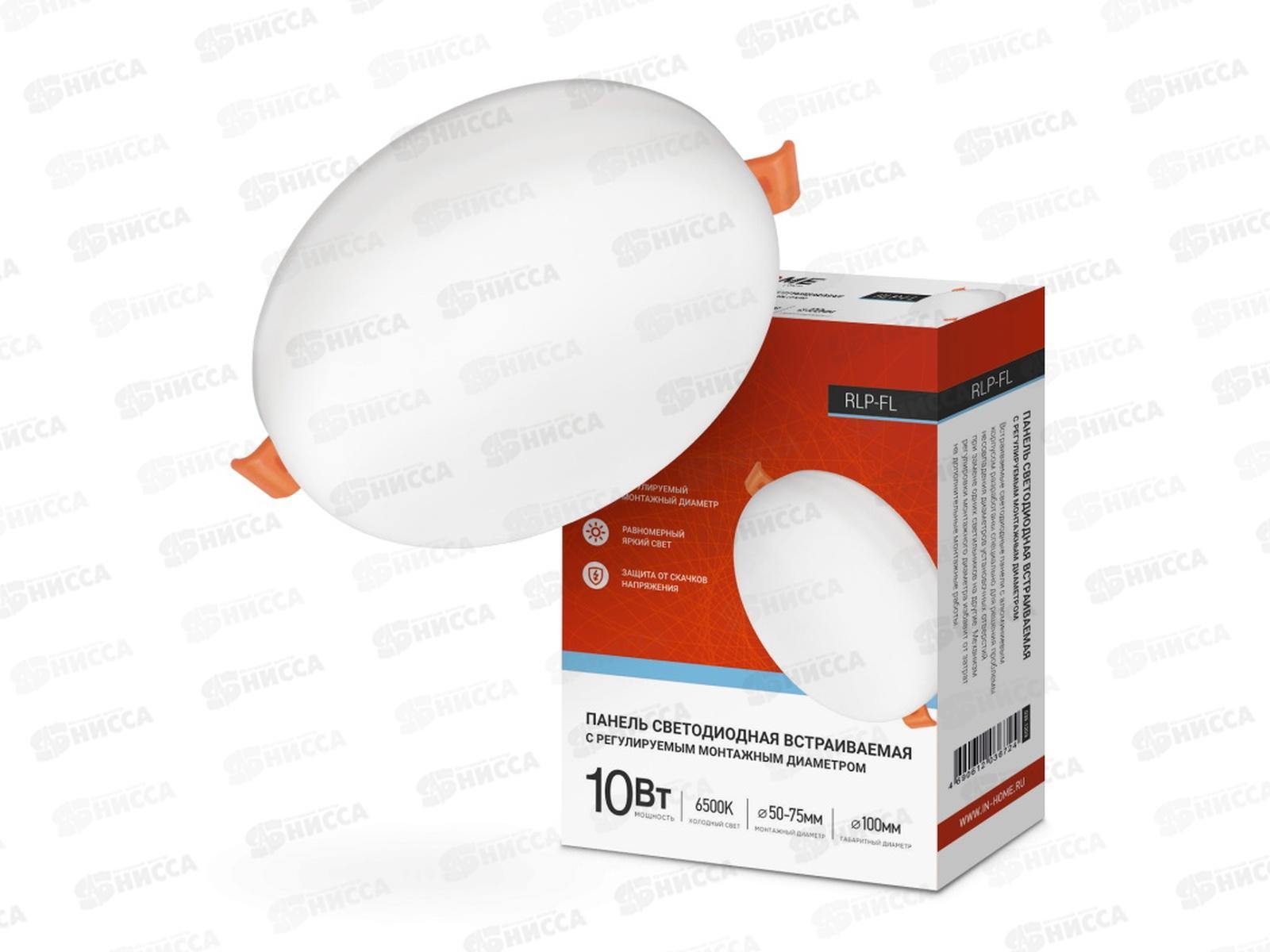 Панель светодиодная inHOME RLP-FL 10Вт 6500К 900Лм с рег. безрамочная