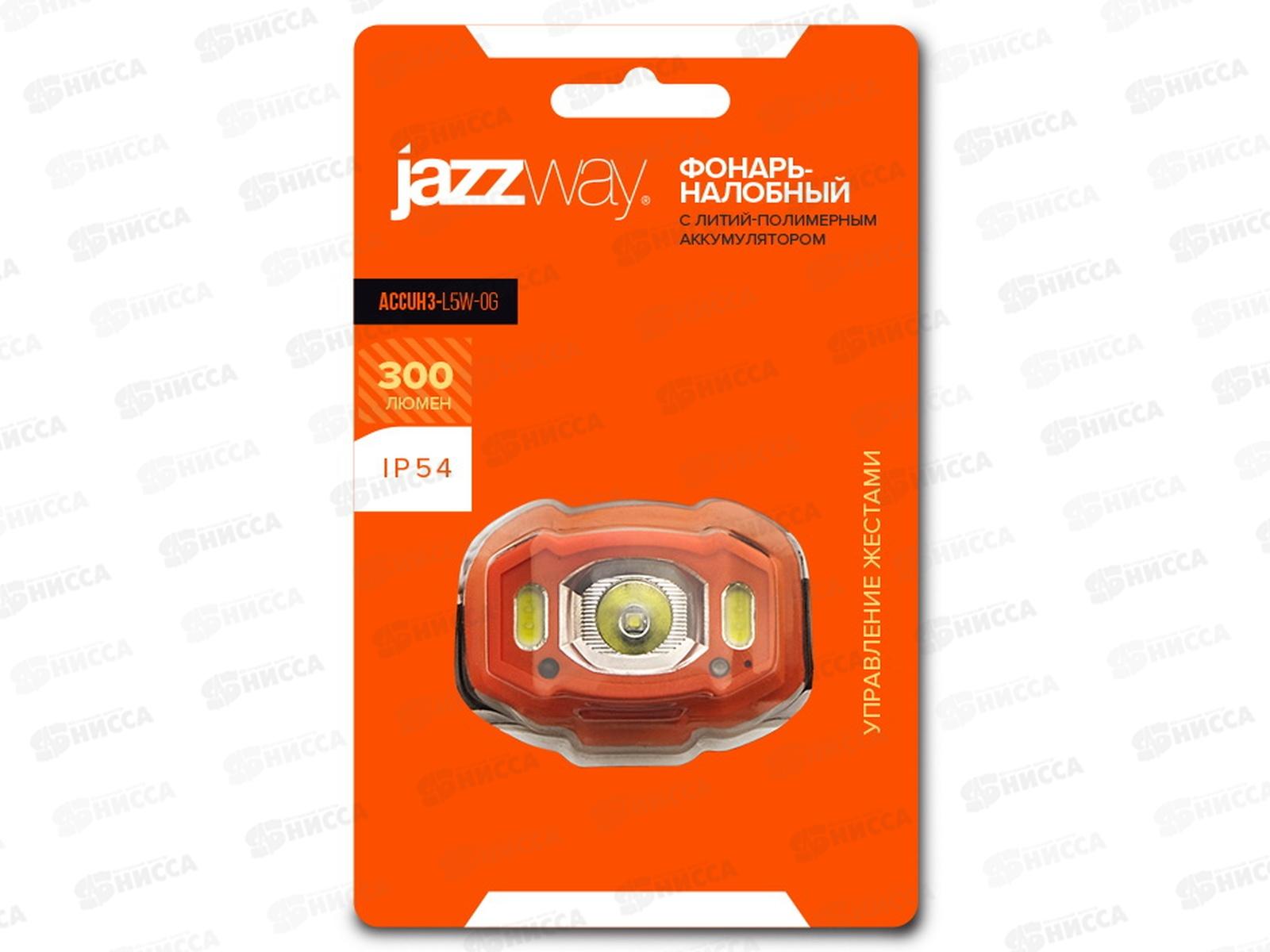 Фонарь JAZZway аккумуляторный налобный, AccuH3-L5W-og, Li-Pol 1200мАч *12/48