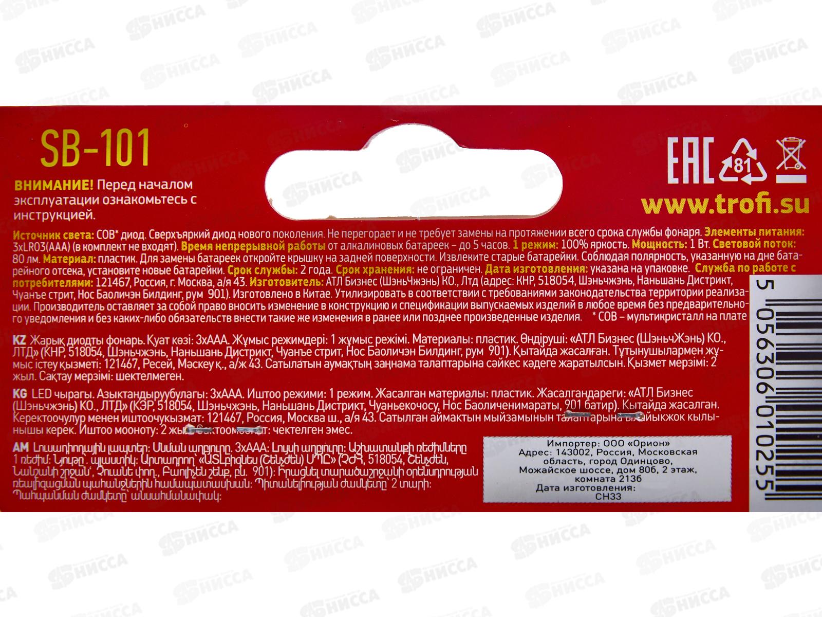 Фонарь ТРОФИ SB-101 с подсветкой, белый, пушлайт, 3*AAA *36/144