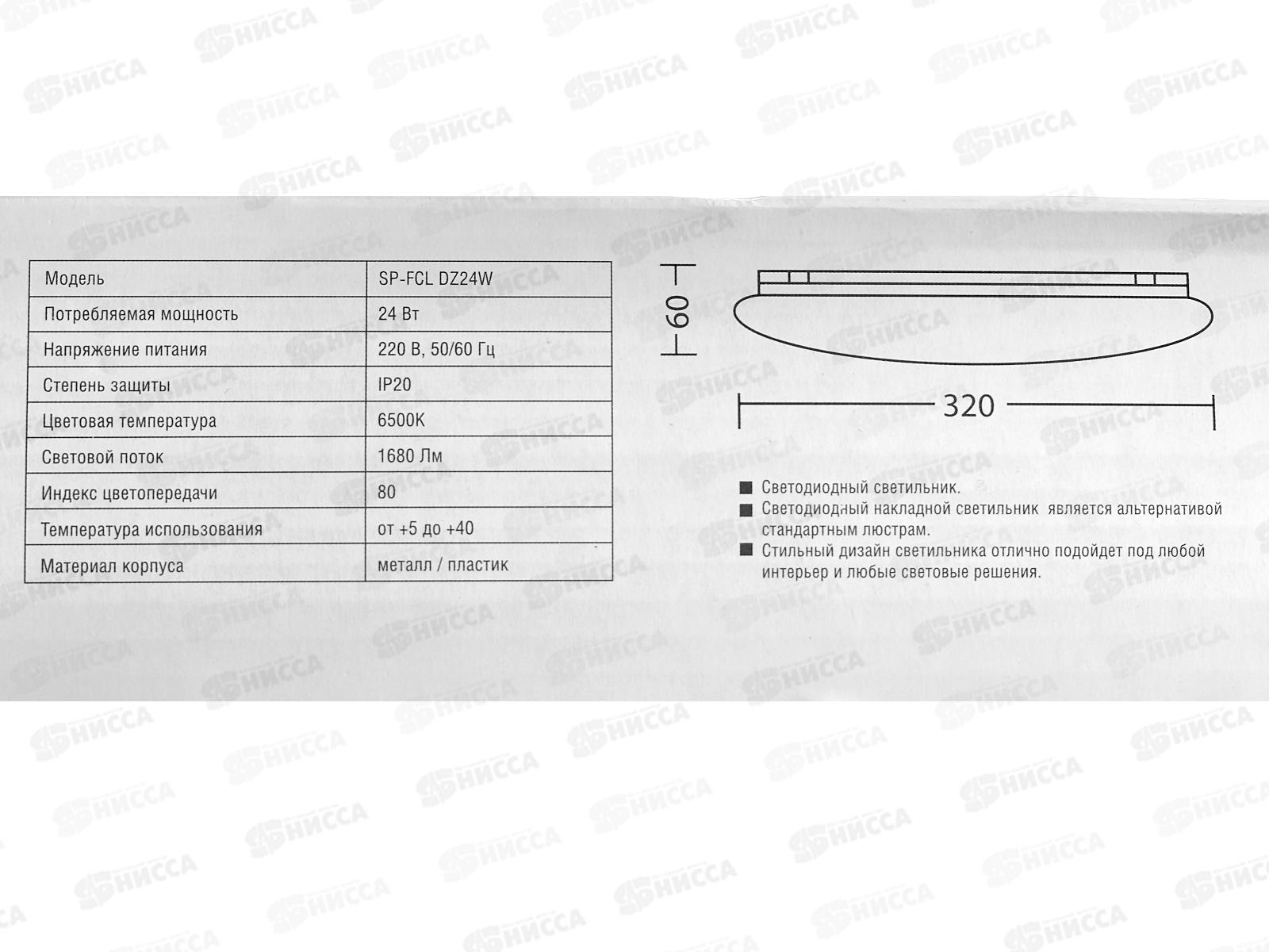 Светильник светодиодный СПУТНИК SP-FCL DZ 24Вт 1680Лм 6500К 320*60мм *20