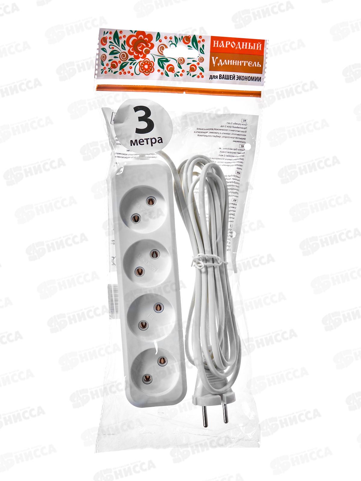 Удлинитель TDM У310 4гнезда 3м, без заземления, 6А, 1380Вт белый, 1206