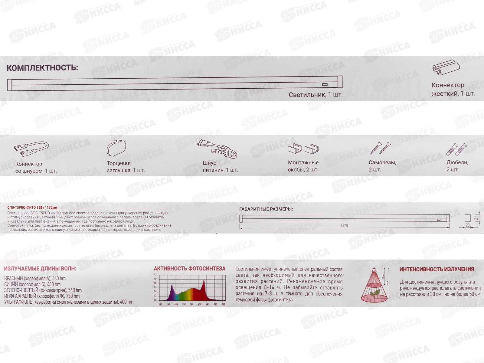 Светильник светодиодный inHOME СПБ-Т5PRO-ФИТО полный спектр 25Вт 230B 1170мм
