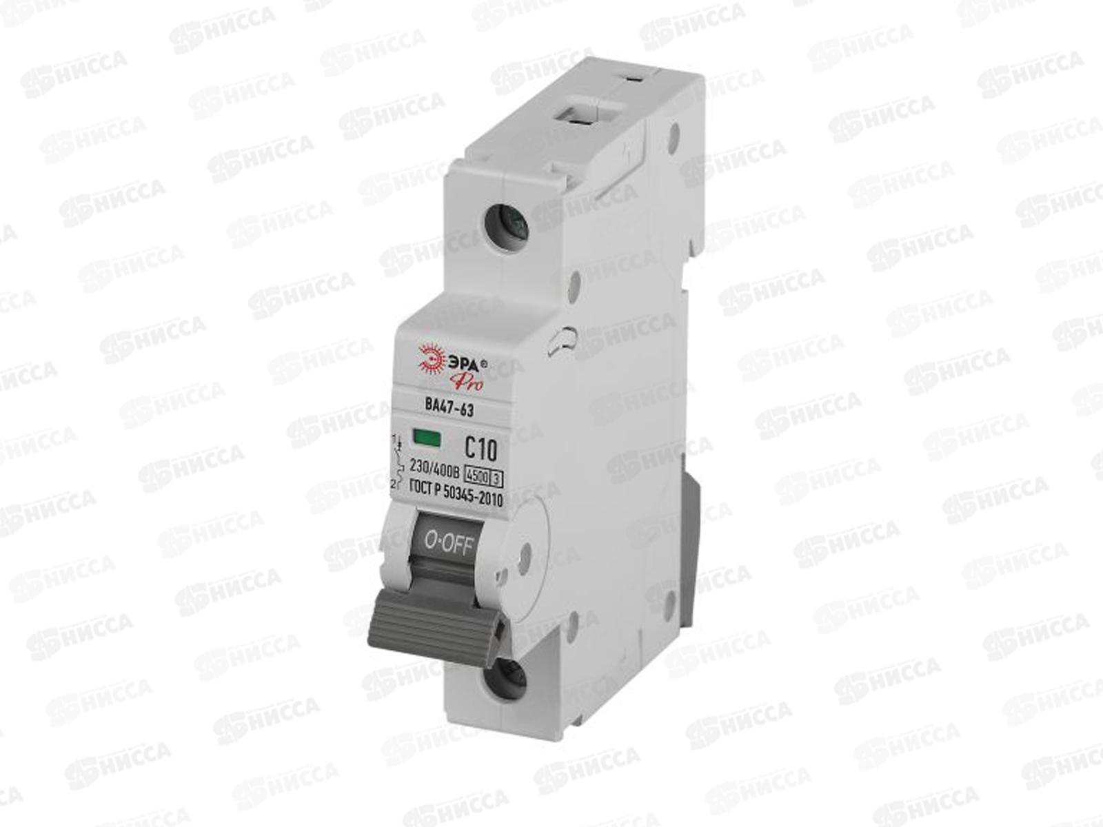 Автоматический выключатель ВА47-63 1P 10А 4,5кА C ЭРА Pro, VA63-1P10C6 *12/120