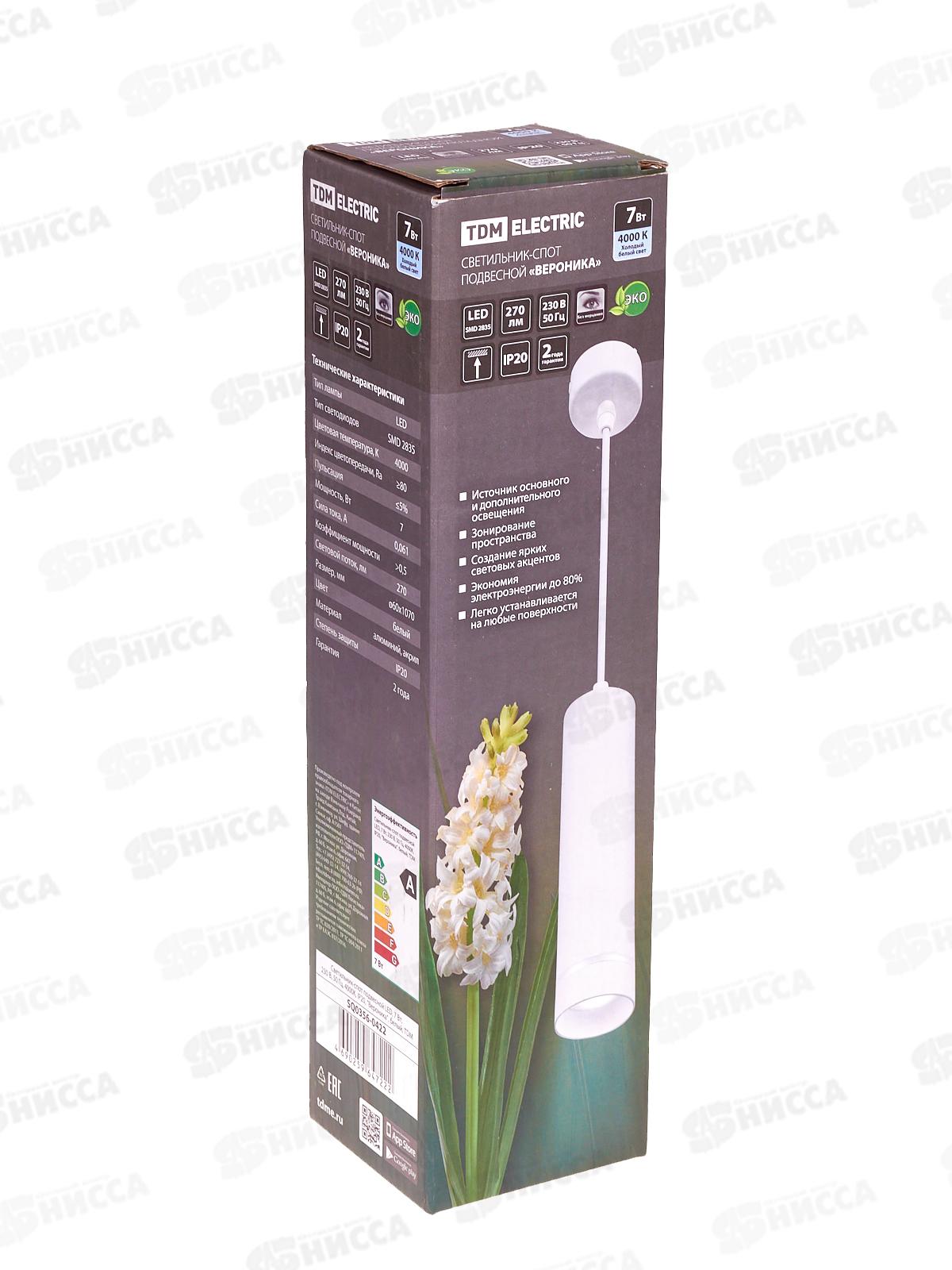Светильник-спот подвесной 7Вт, 4000К, IP20, "Вероника", белый, TDM 0422 *30