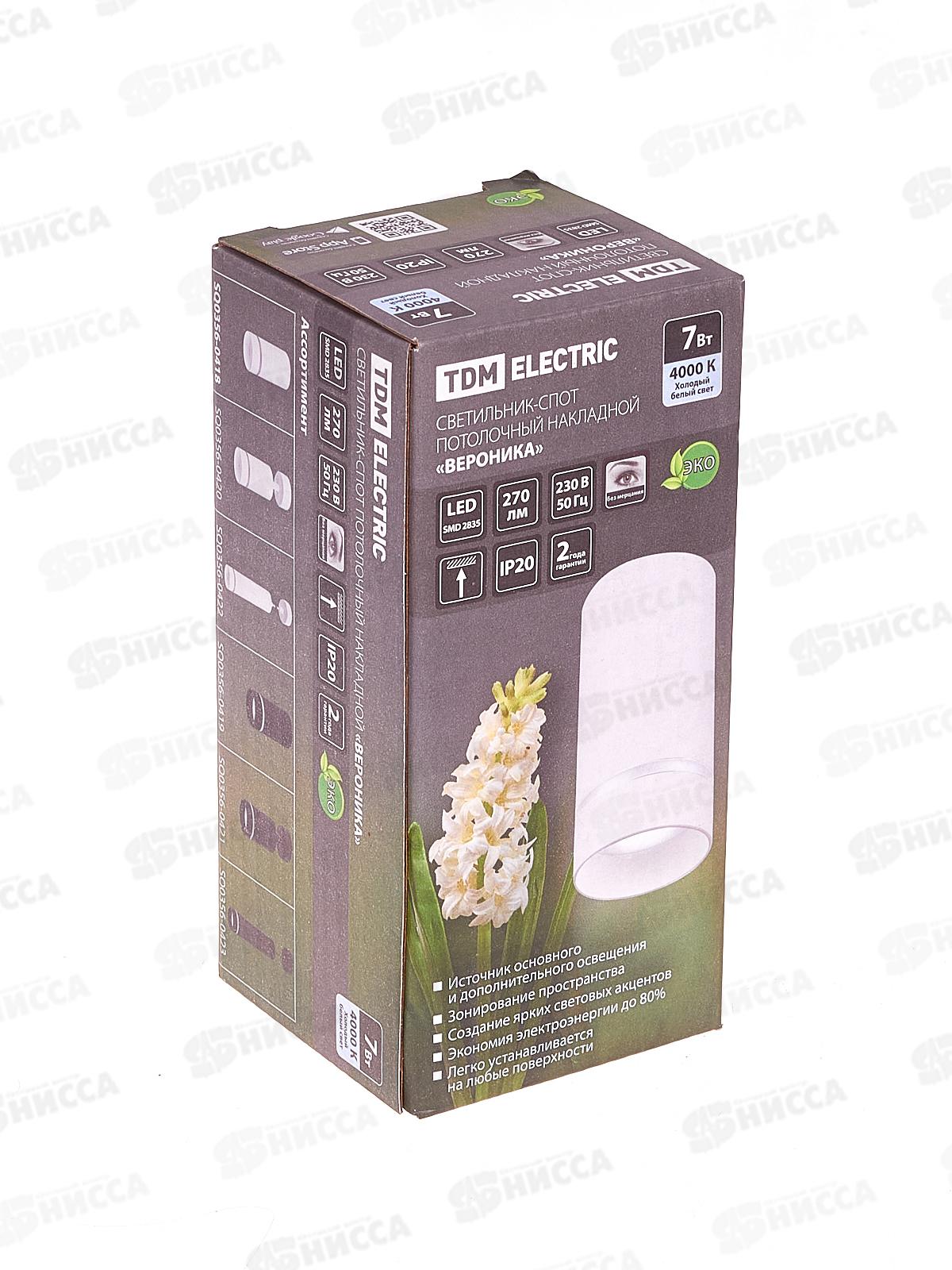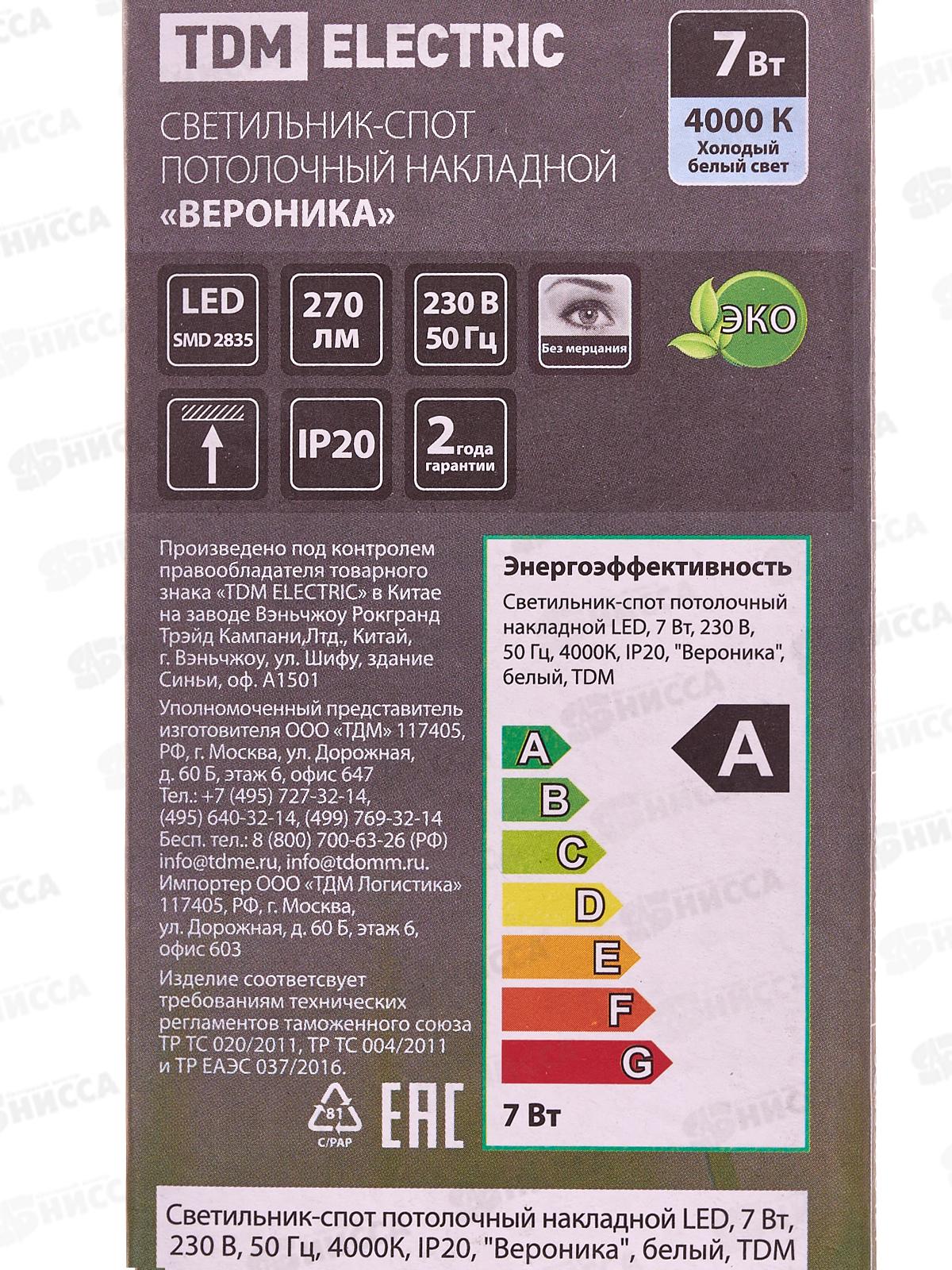 Светильник-спот потолочный накладной 7Вт, 4000К, IP20, "Вероника", белый, TDM 0418 *50