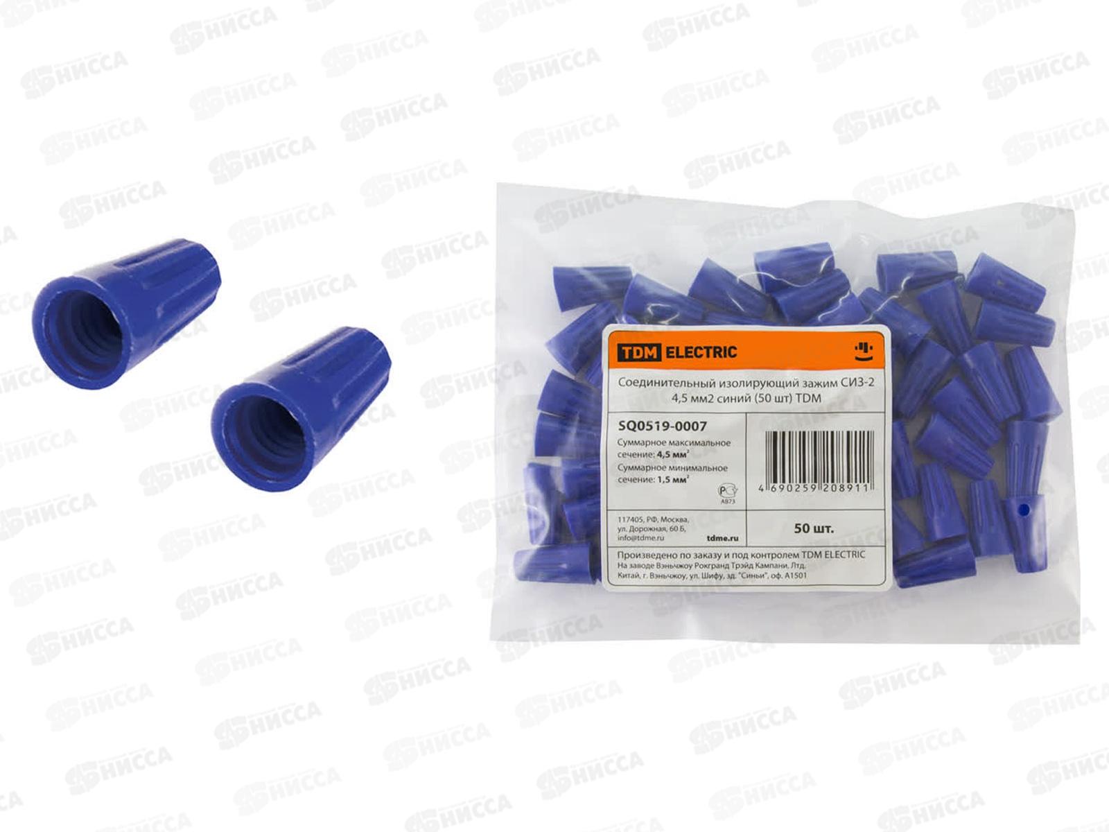 Соединительный изолирующий зажим СИЗ-2 4,5 мм2 синий (50шт) TDM, 0007