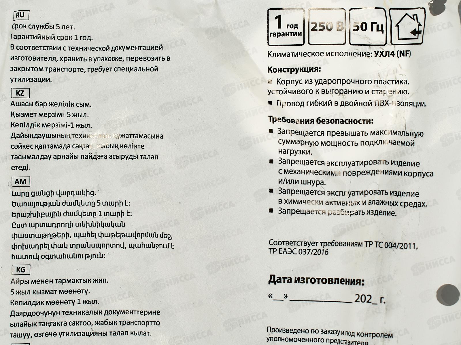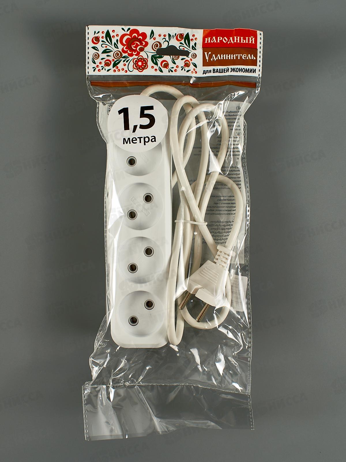 Удлин. TDM УН3 4гнезда 1.5м без заземления, 10А, 2300Вт белый народный У-42016 1315