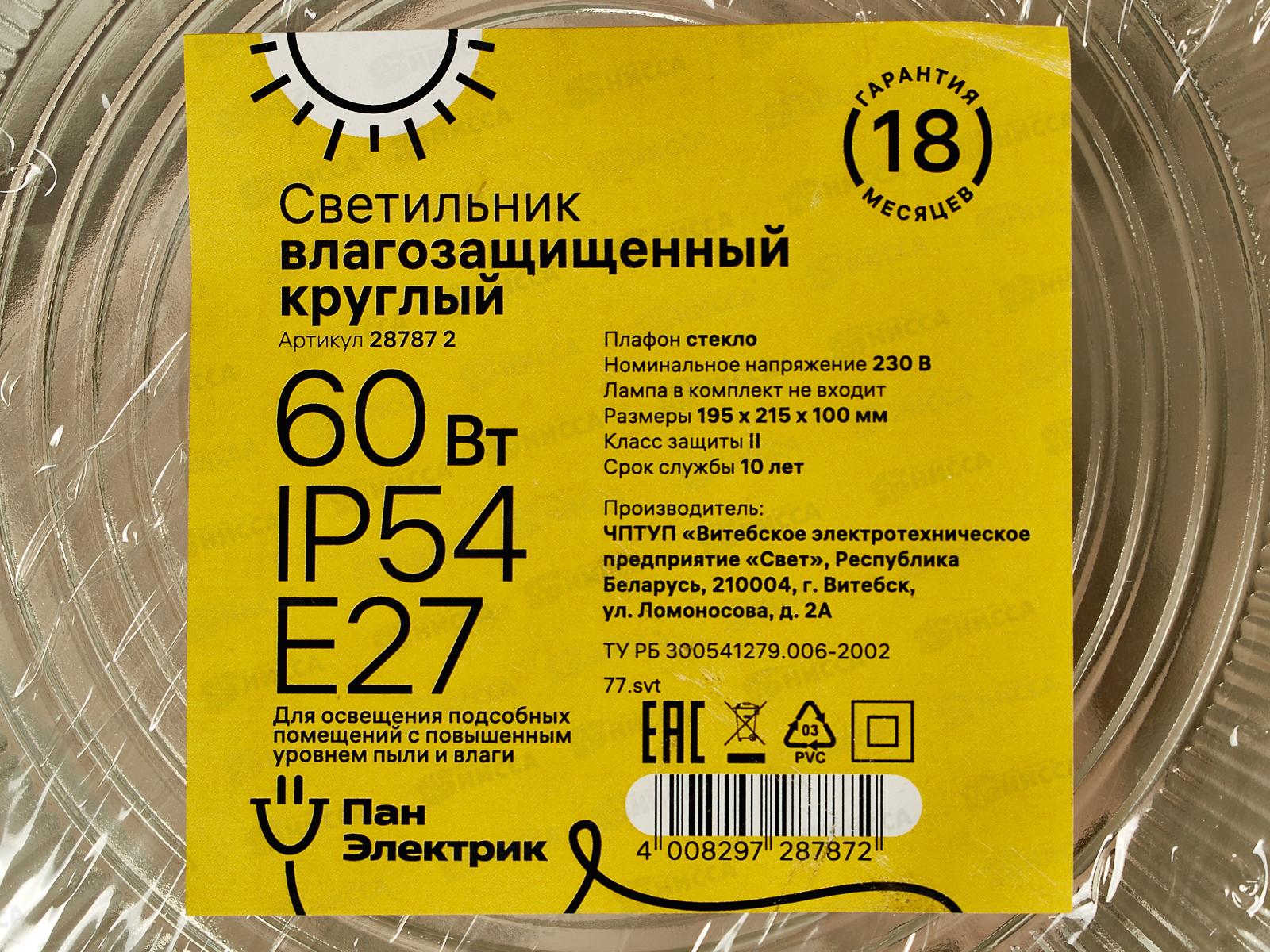 Светильник ламповый влагозащищенный НПБ Е27 IP54 Пан Электрик 28787
