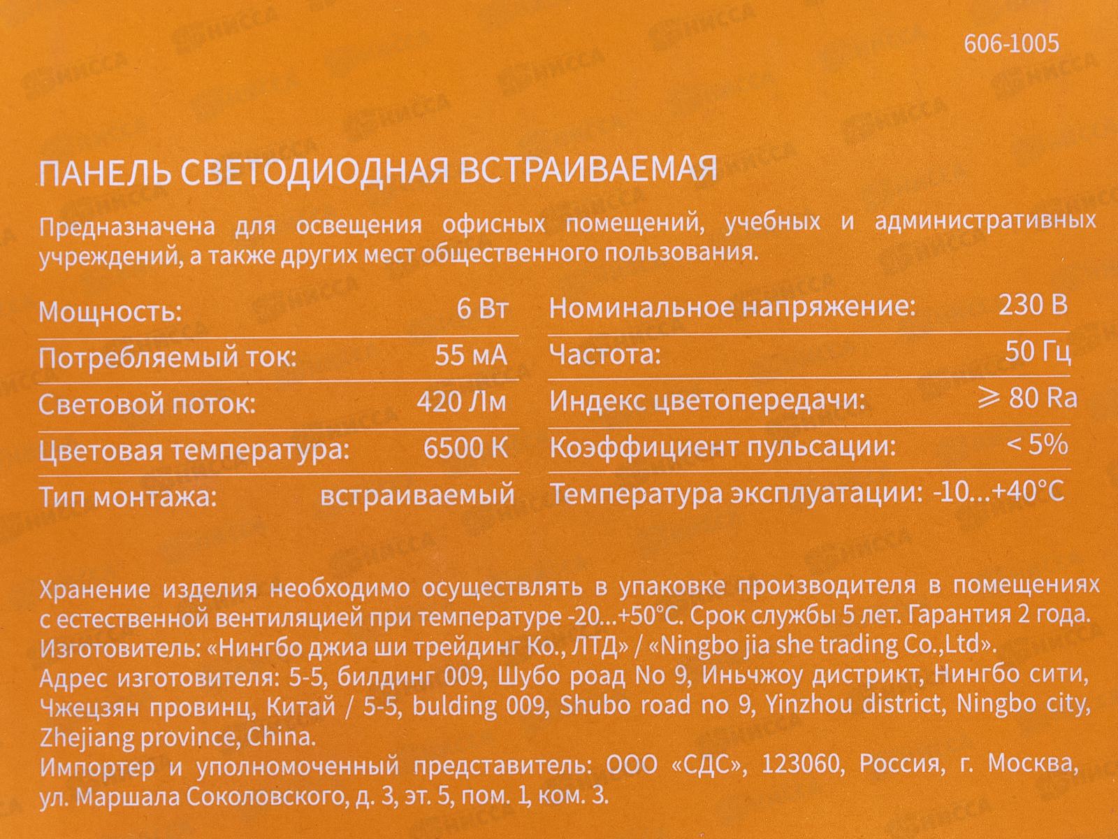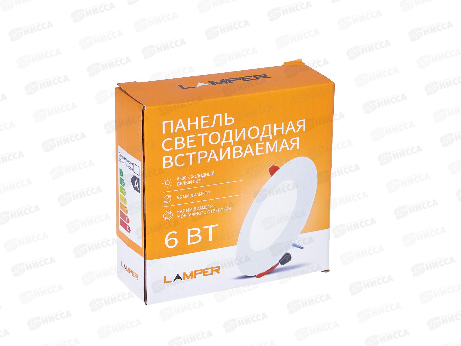 Панель светодиодная встраиваемая круглая 6Вт 230В 6500К 420Лм 95мм белая IP20 LAMPER, 606-1005