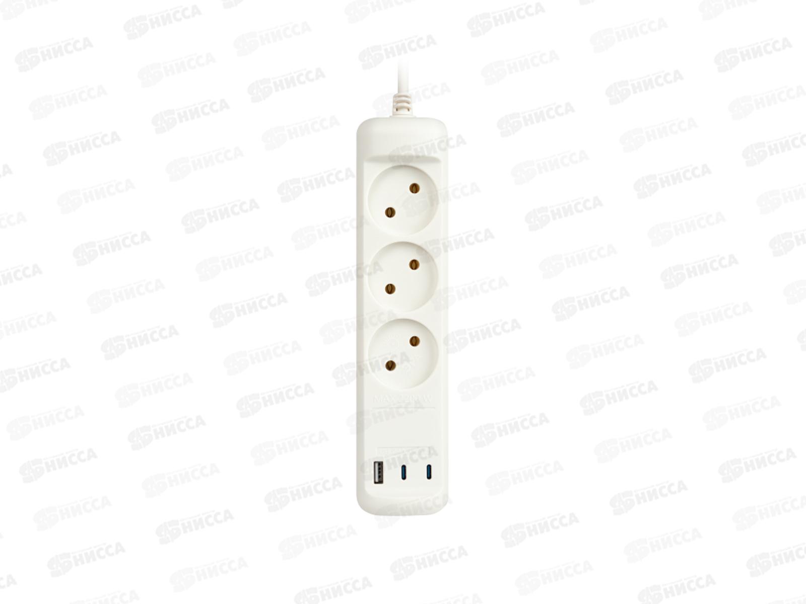 Удлинитель ЭРА 3роз.+3USB A+C 3м 10А, белый, U-3-3m-USB-W *20