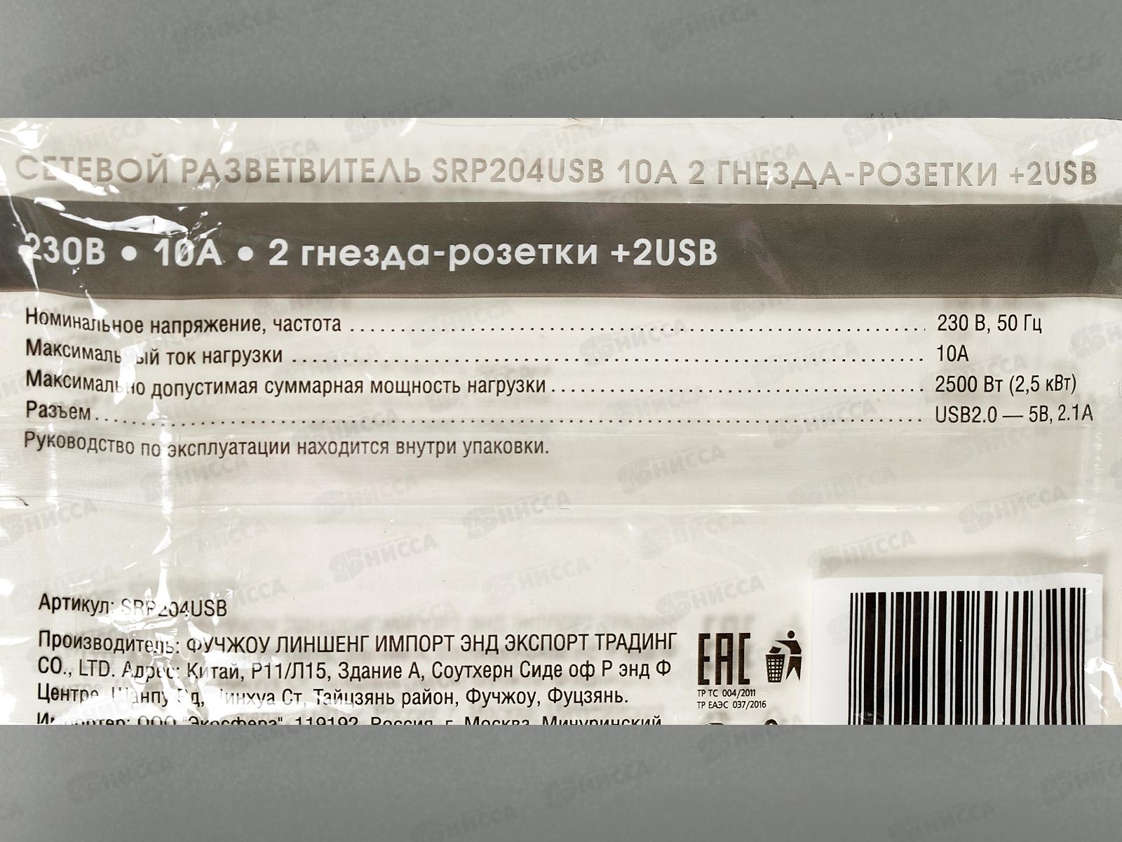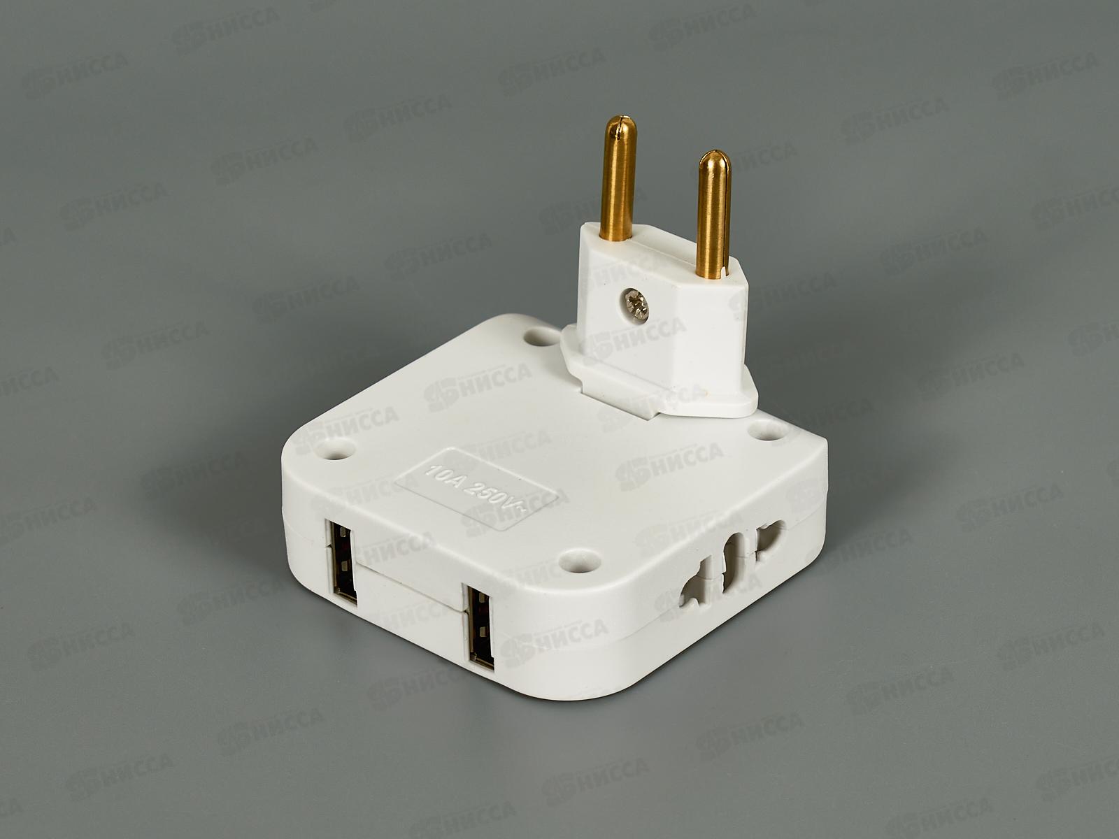 Тройник СПУТНИК SRP204USB 2роз.+2USB 2.1А 10А IP20 белый *400