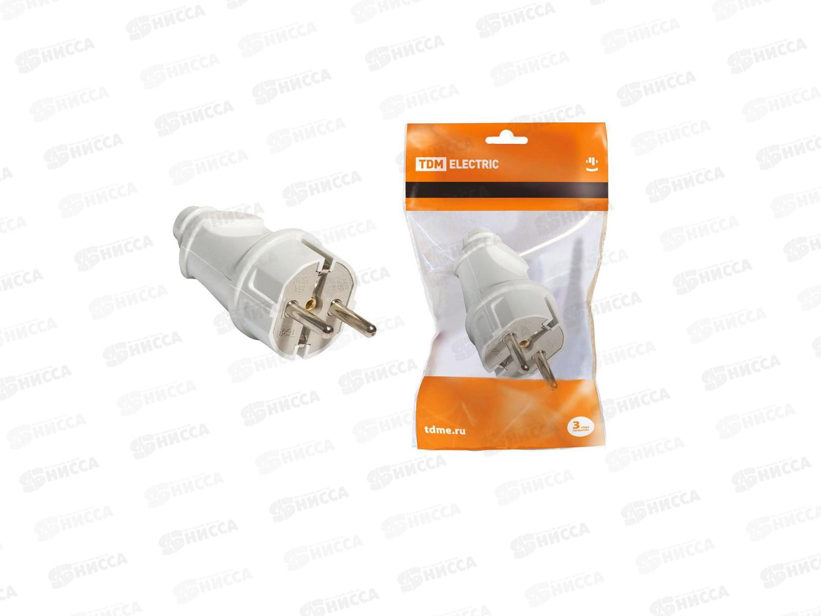 Вилка TDM прямая с заземлением белая 16А 250В, 0003 *25