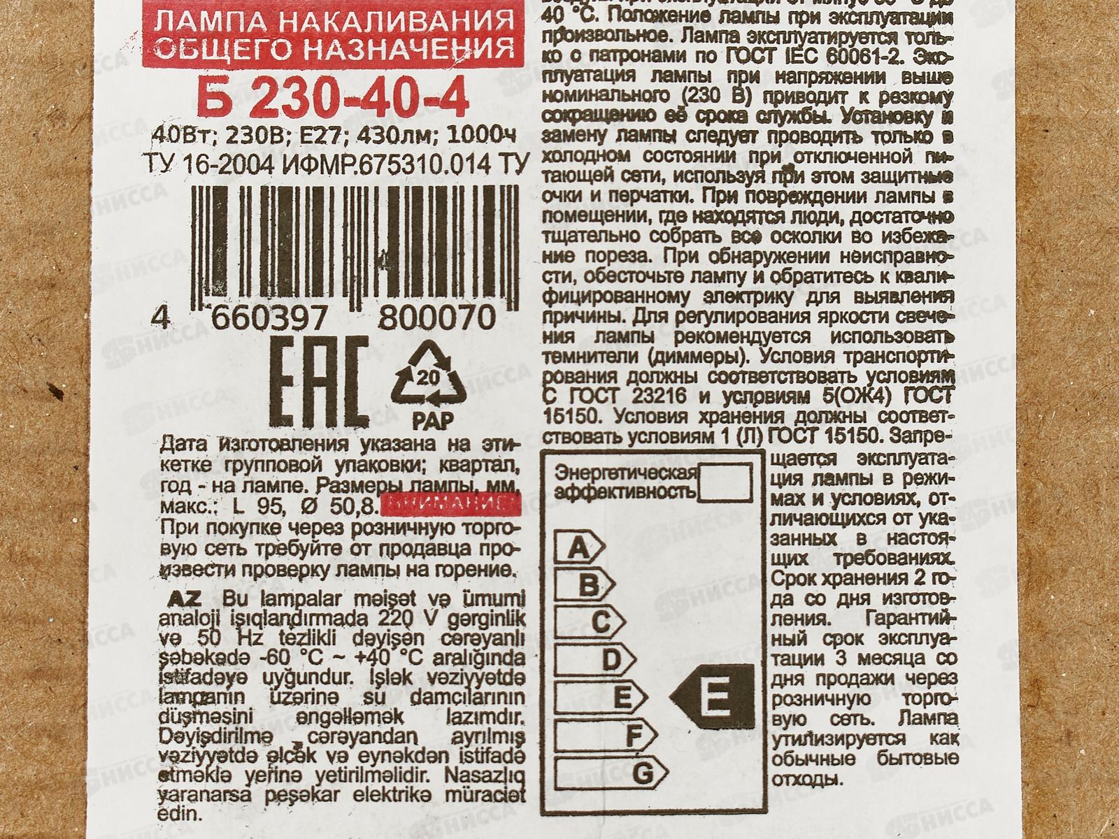 Эл.ламп. 40 Вт Саранск, E27, в цветной гофре *100