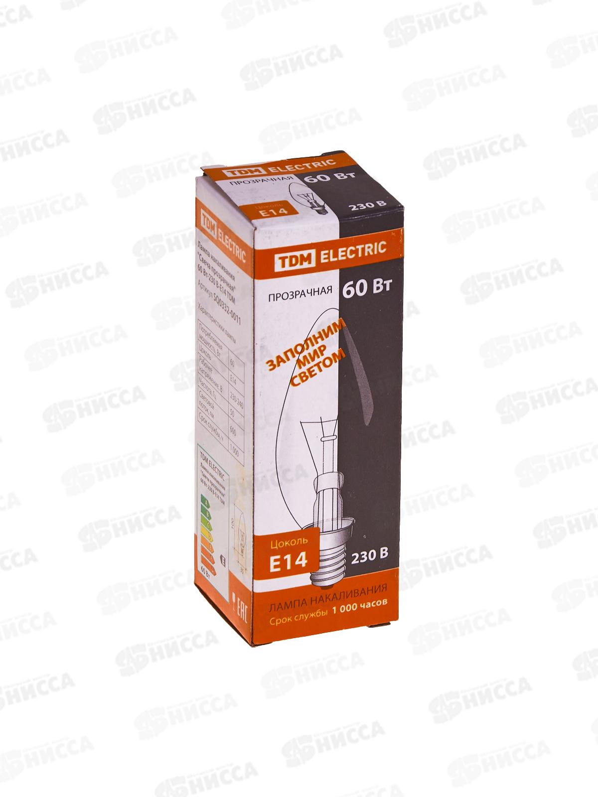 Электрическая лампочка 60 Вт TDM E14, свеча прозрачная, 0009 *100