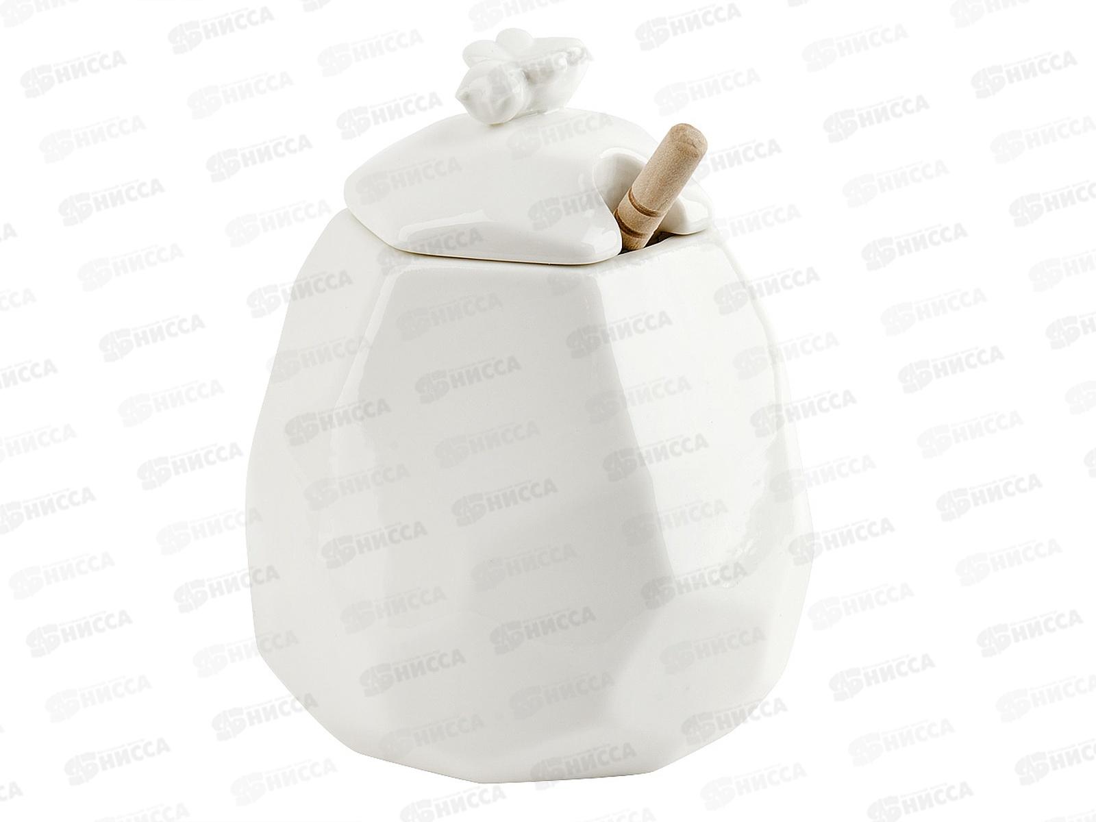 Медовница с ложкой "Naturel", 500 мл. Размеры: 10х10х13 см. Фарфор, бамбук. Подарочная упаковка.