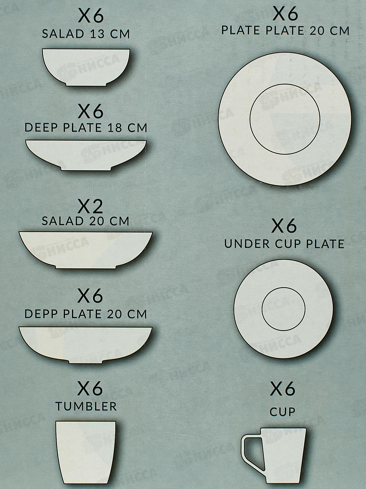 Набор столовый 44+1предметов "ALTA MAREA" дымка 62207 *1