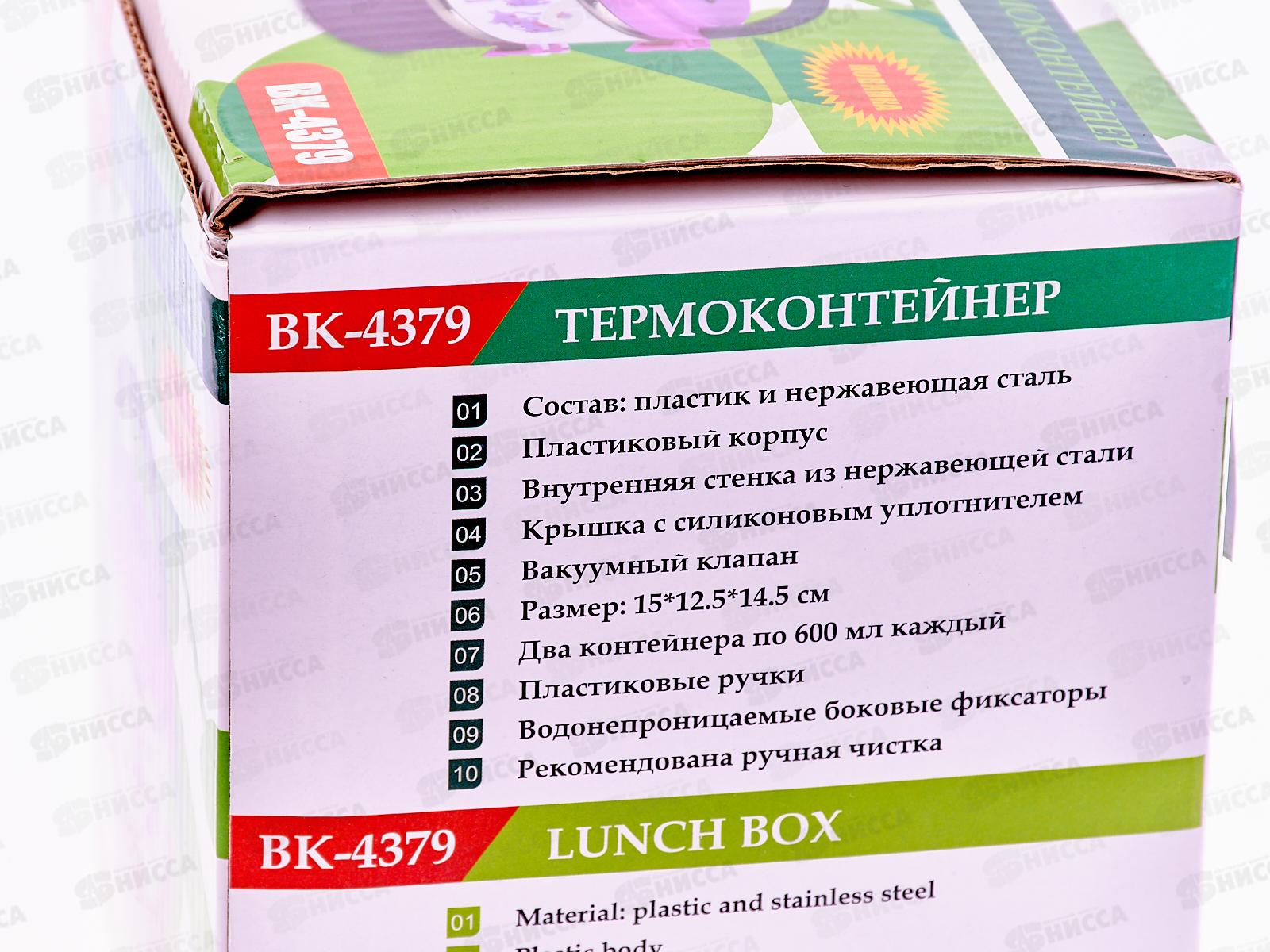 Термоконтейнер Bekker BK-4379. Термоконтейнер состоит их двух емкостей по 600 мл. каждая. Корпус пластиковый, внутренняя стенка из нержавеющей стали, ручки пластиковые, вакуумный клапан, водонепроницаемые боковые фиксаторы, крышка с силиконовым уплотнителем. Рекомендована ручная чистка.