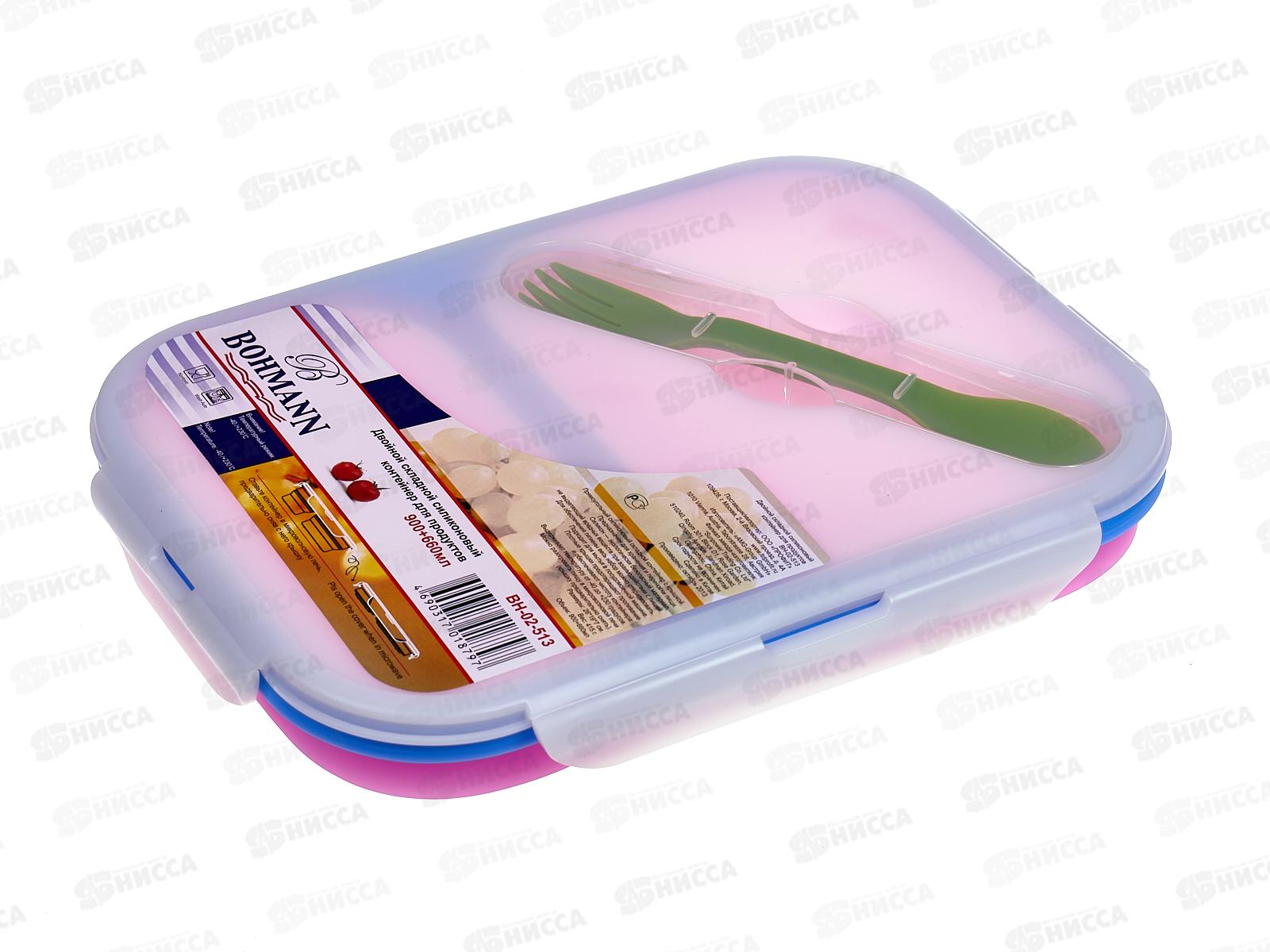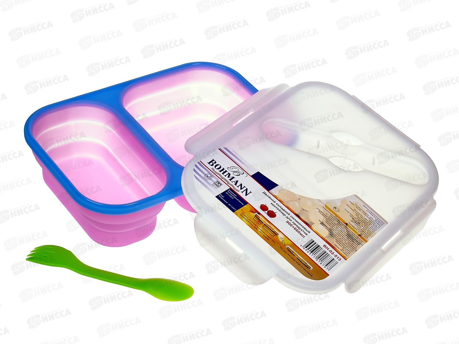 Контейнер для продуктов ВН-02-513 /двойной-складной/ 0,9+0,66л силикон