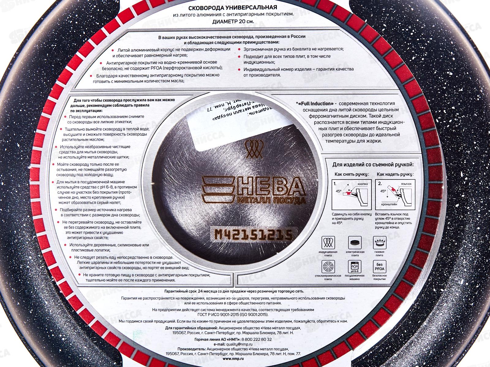 Сковорода 20см литая Индукция Гранит съемная ручка, L18020i